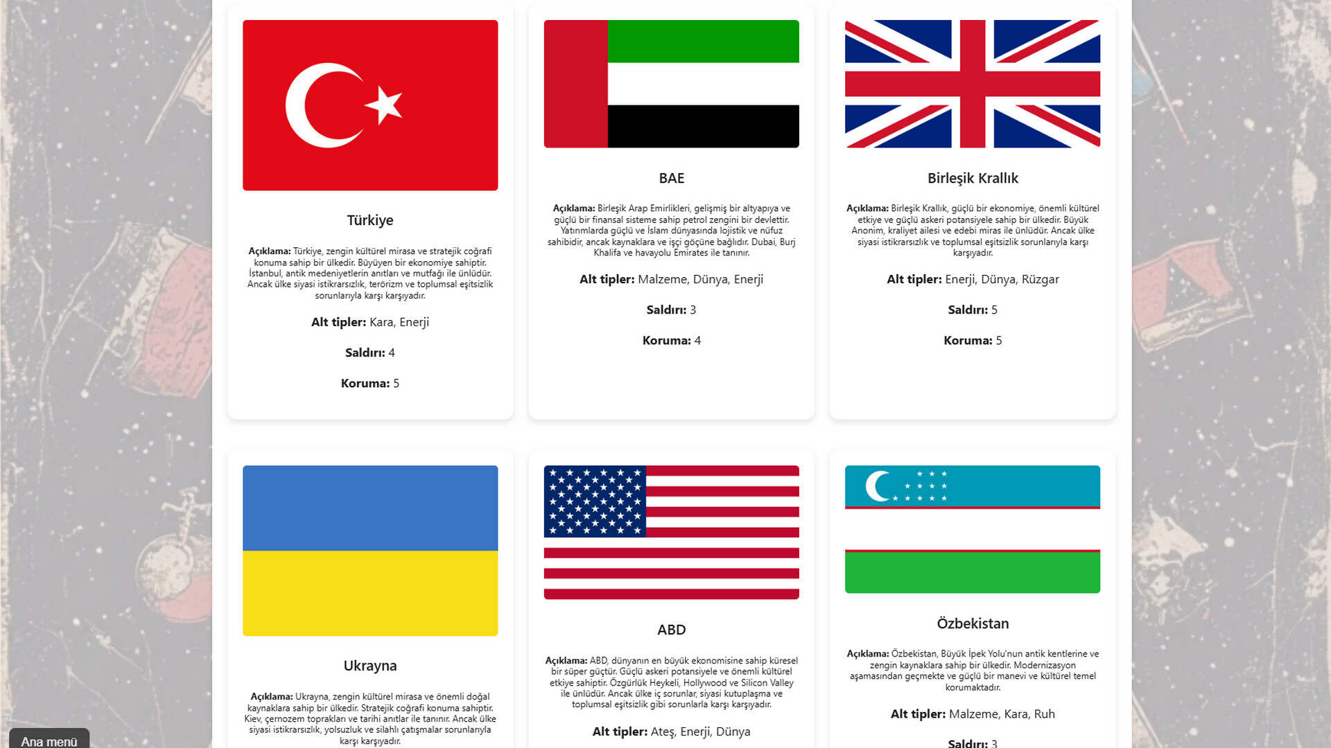 GLOBAL CONTROL COUNTRIES, size yeni şeyler öğretecek ve dünya jeopolitik süreçlerini anlamanıza yardımcı olacak bir oyundur!