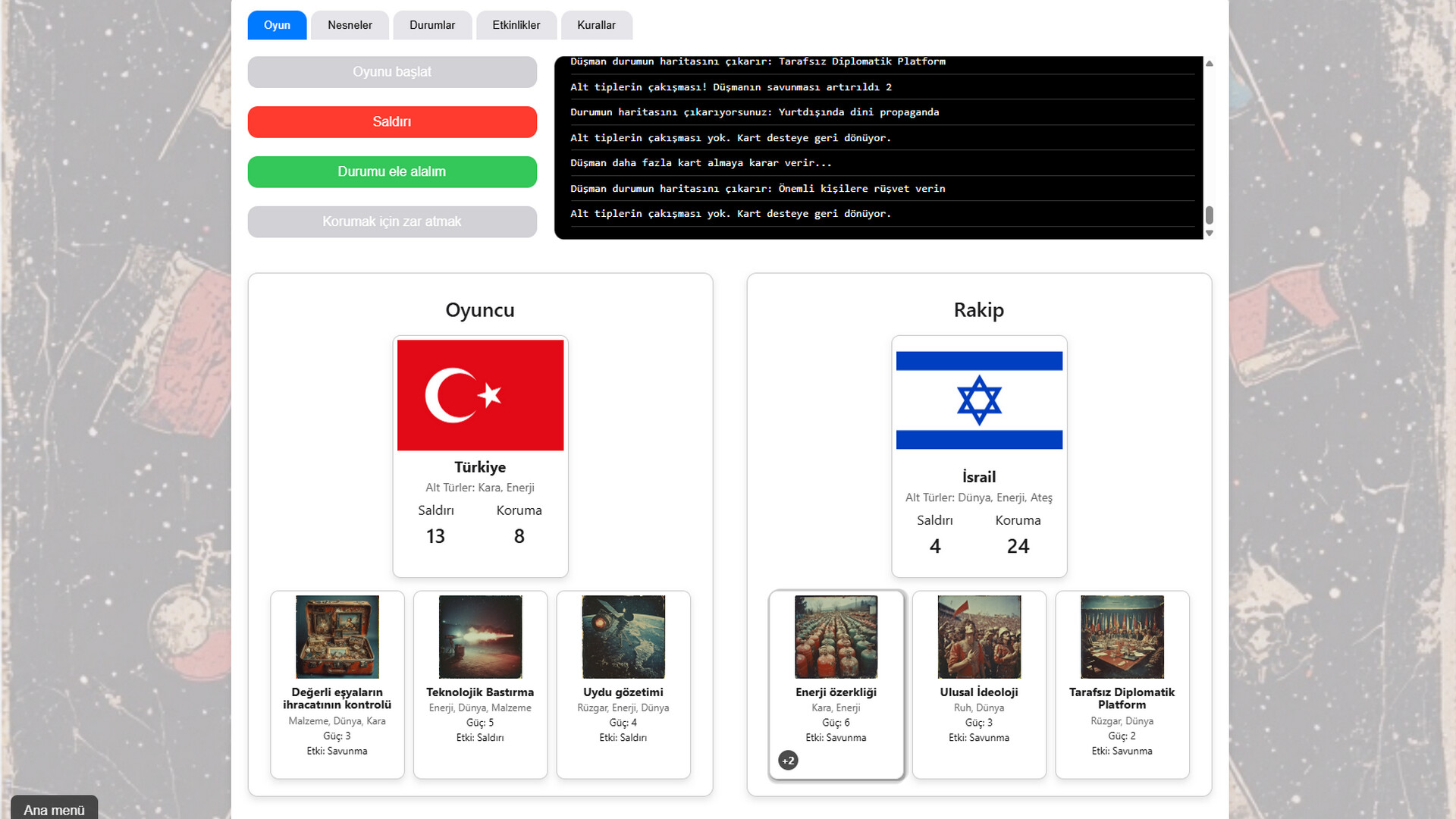 GLOBAL CONTROL COUNTRIES, başka hiçbir yerde bulunmayan yenilikçi bir kart savaş mekaniğine sahiptir: