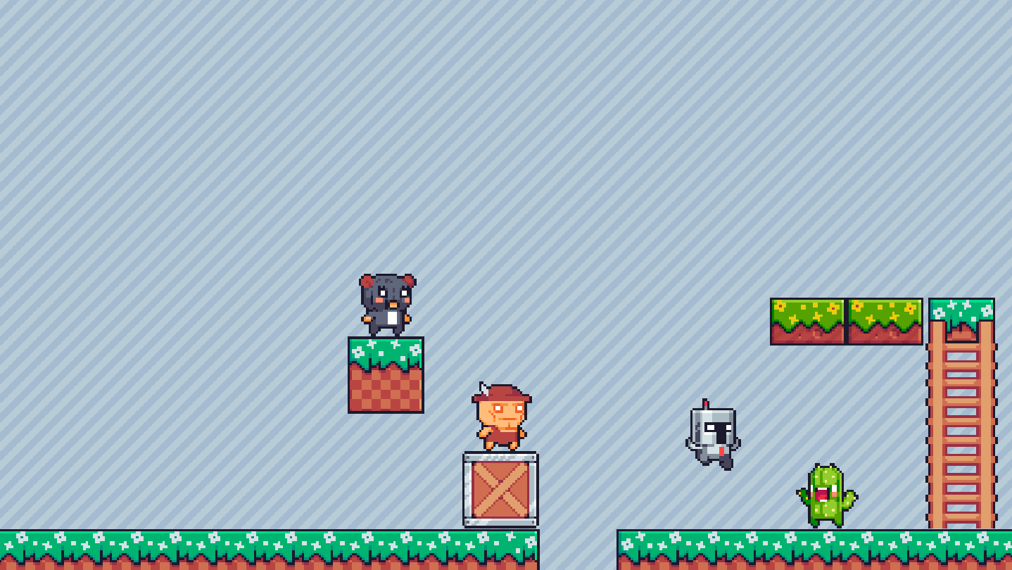 Ретро-головоломка в клетках про падения, ямы и ящики. Думай на шаг вперёд, переключайся между двумя героями и обезвреживай врагов.