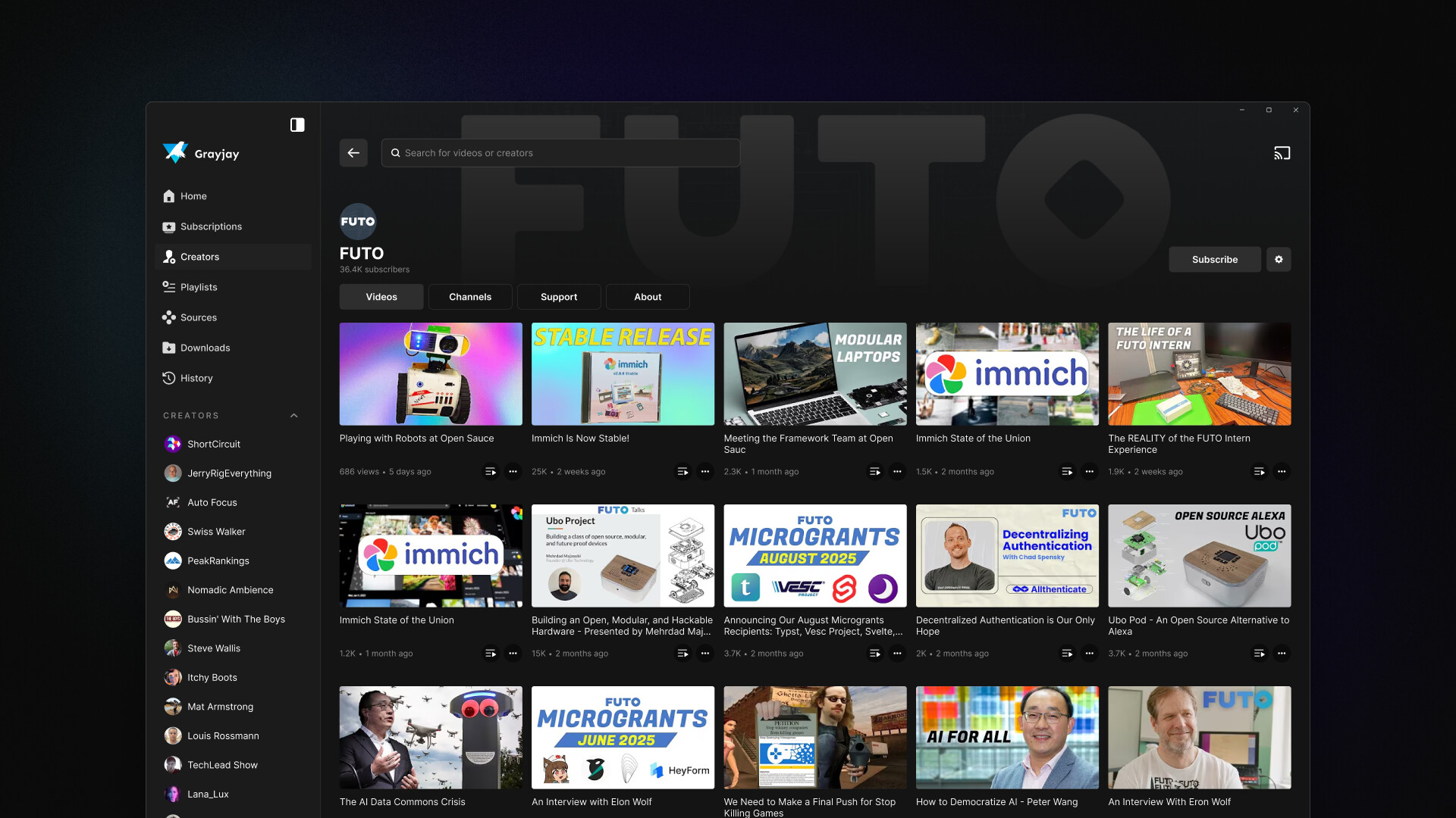 Grayjay enables you to watch video content in your own terms, fully retaining ownership and having control over what you watch. Your content on your terms!