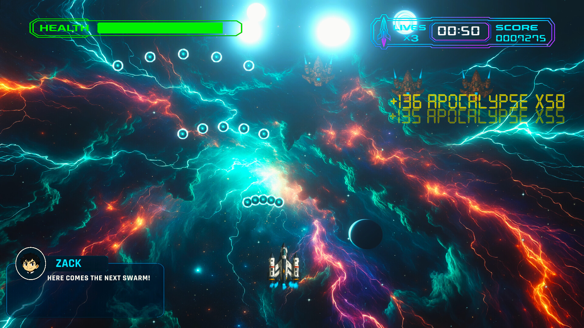 Zaetherfall is a precision bullet-hell shmup where three rival aces from the URA, EUPRA, and the Sacred Eastern Dominion forge a last-chance coalition against Zael Aether—a silent theocracy promising order through annihilation. Play the free demo now and add to your wishlist.