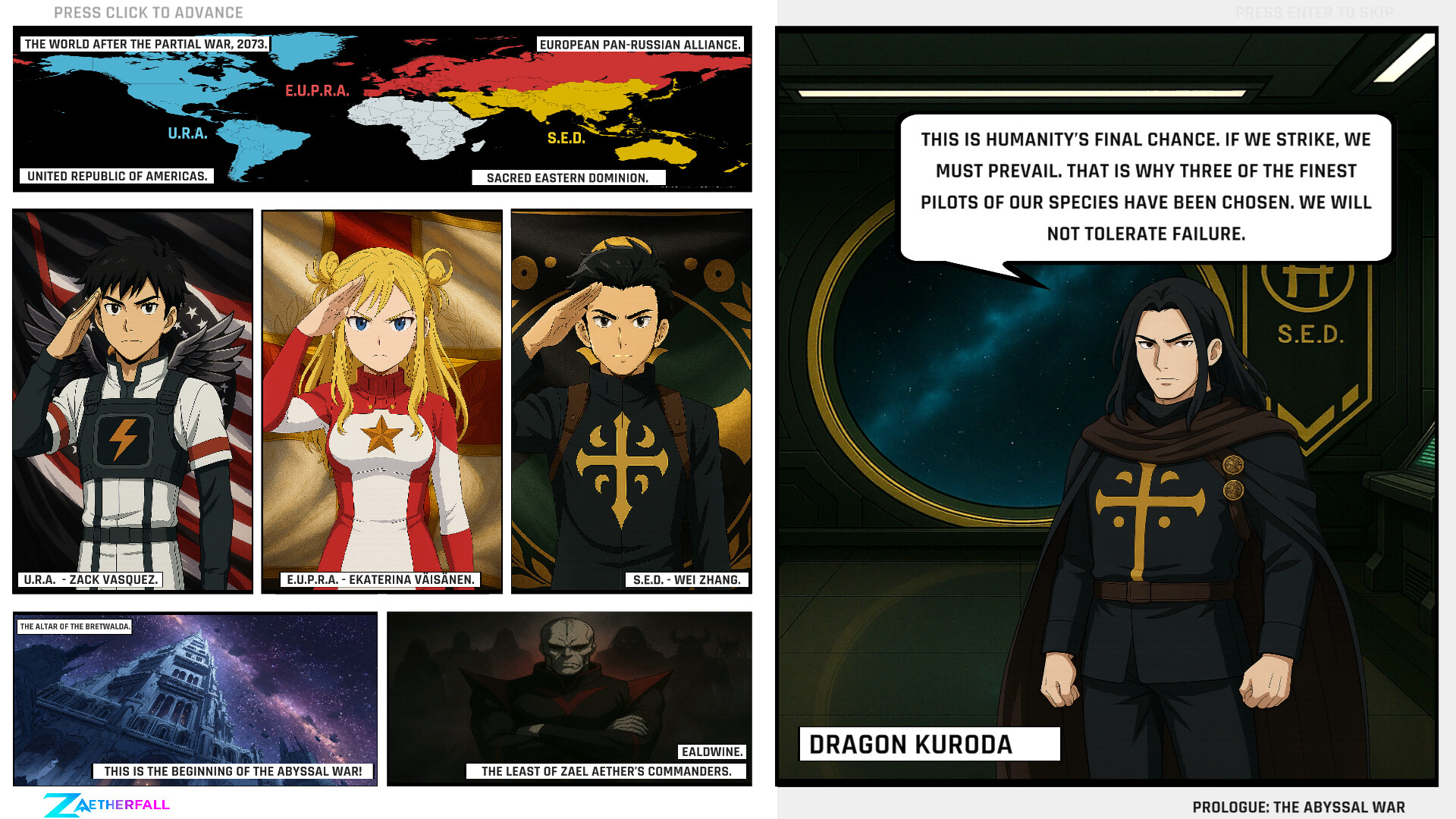Three protagonists, one coalition – Aces from URA, EUPRA, and the Sacred Eastern Dominion.