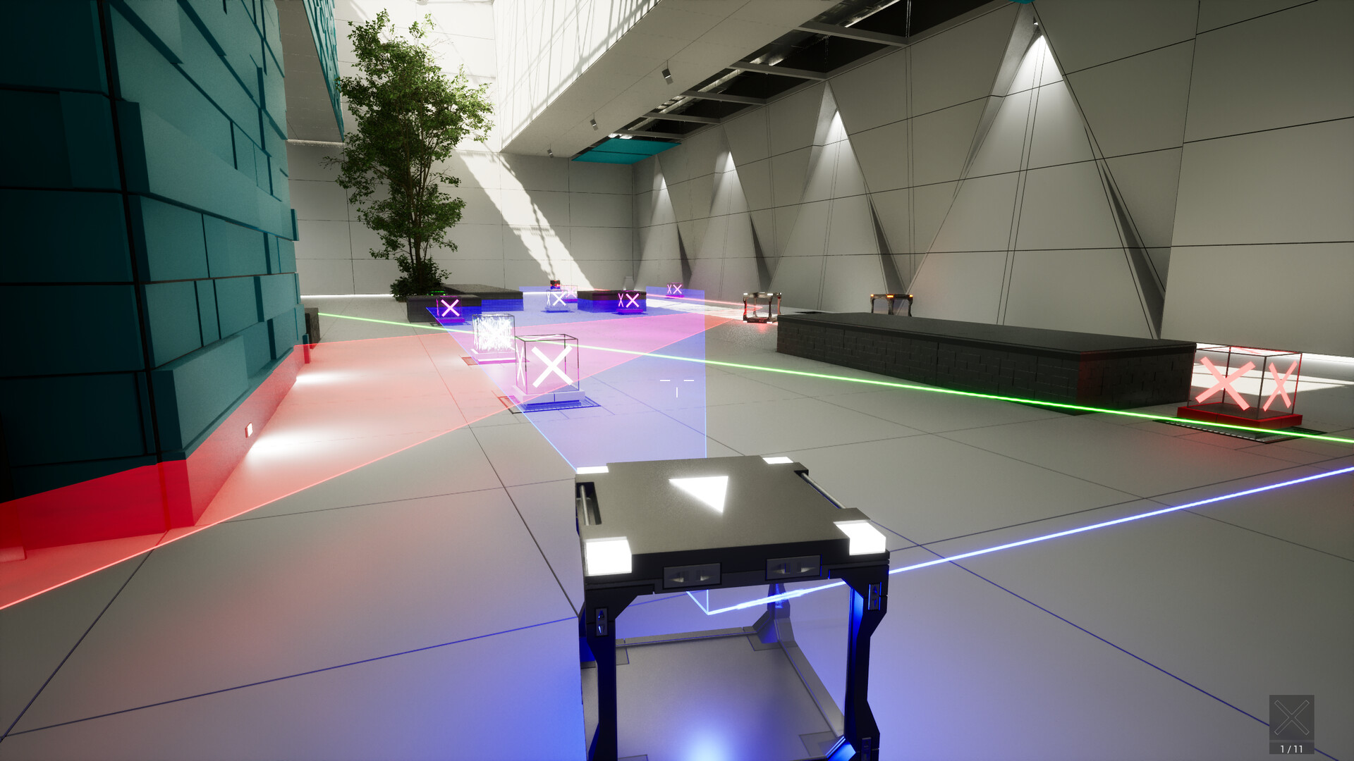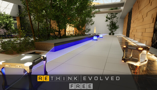 ReThink | Evolved Free is a free first person puzzle game in a peaceful futuristic setting, that features a variety of Puzzles that utilize Lasers and the behavior of light and it's colors to create challenging problems to solve.