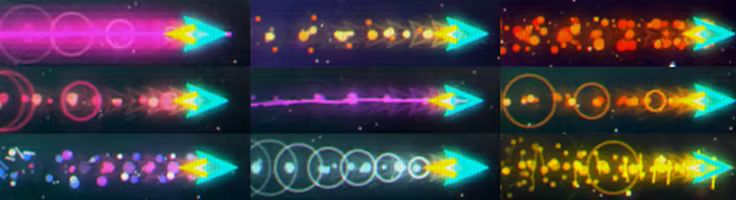 Discover over 12 unique power-ups that drop from enemies, from bombs and teleportation to spawning clones and detonating rainbow engine trails! Time your charged shots to combo with power-ups for extra effects.