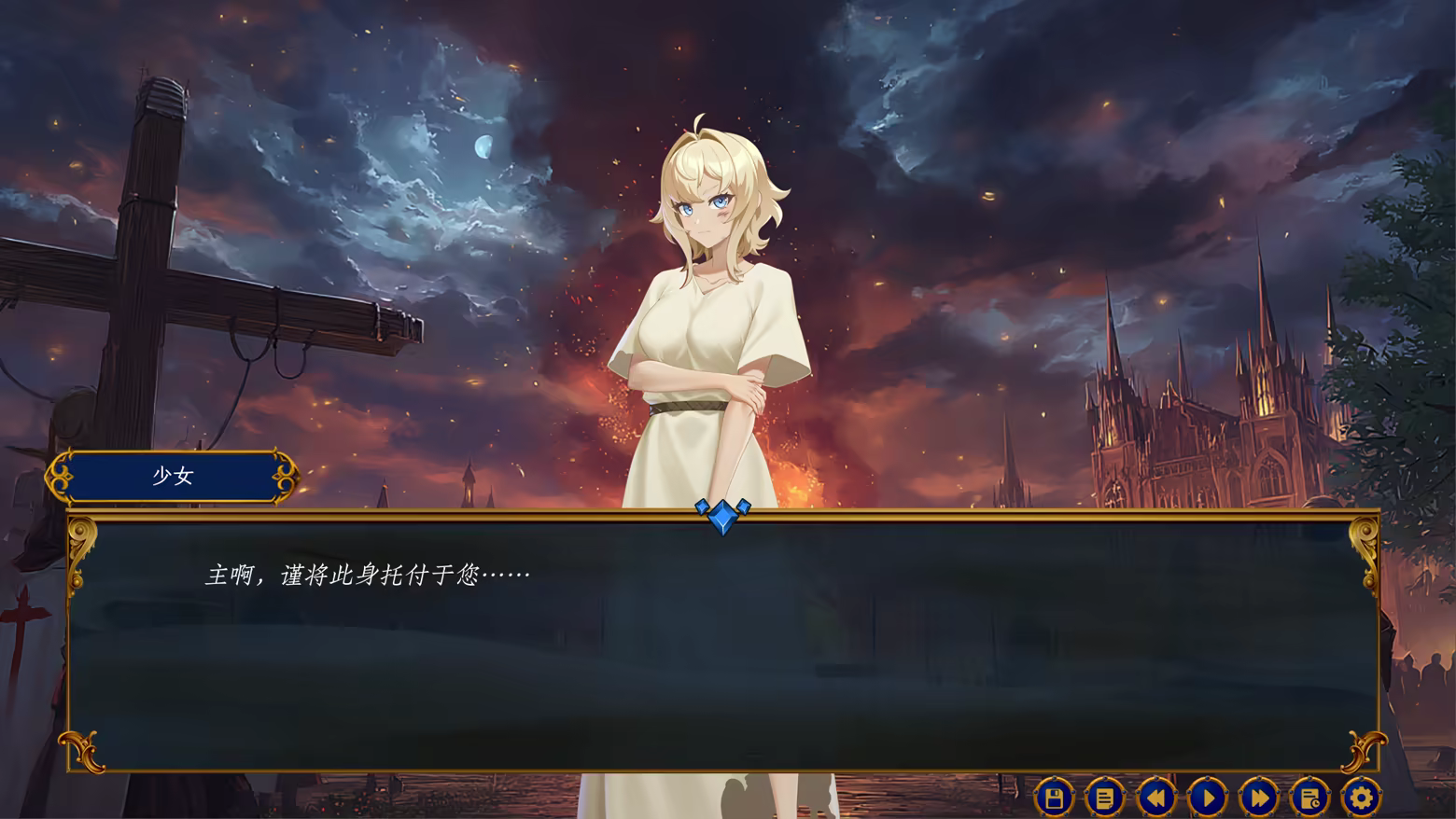 《烈火与王冠》是一款独立开发的历史向恋爱视觉小说(Galgame),讲述了一位出身巴黎、身世成谜的雇佣兵,在英法百年战争最黑暗的岁月中,在战争、权力、信仰与爱之间抉择前行,书写自己的命运的传奇旅程。