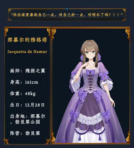 王宫女官,贵族千金,那慕尔侯爵家的掌上明珠。