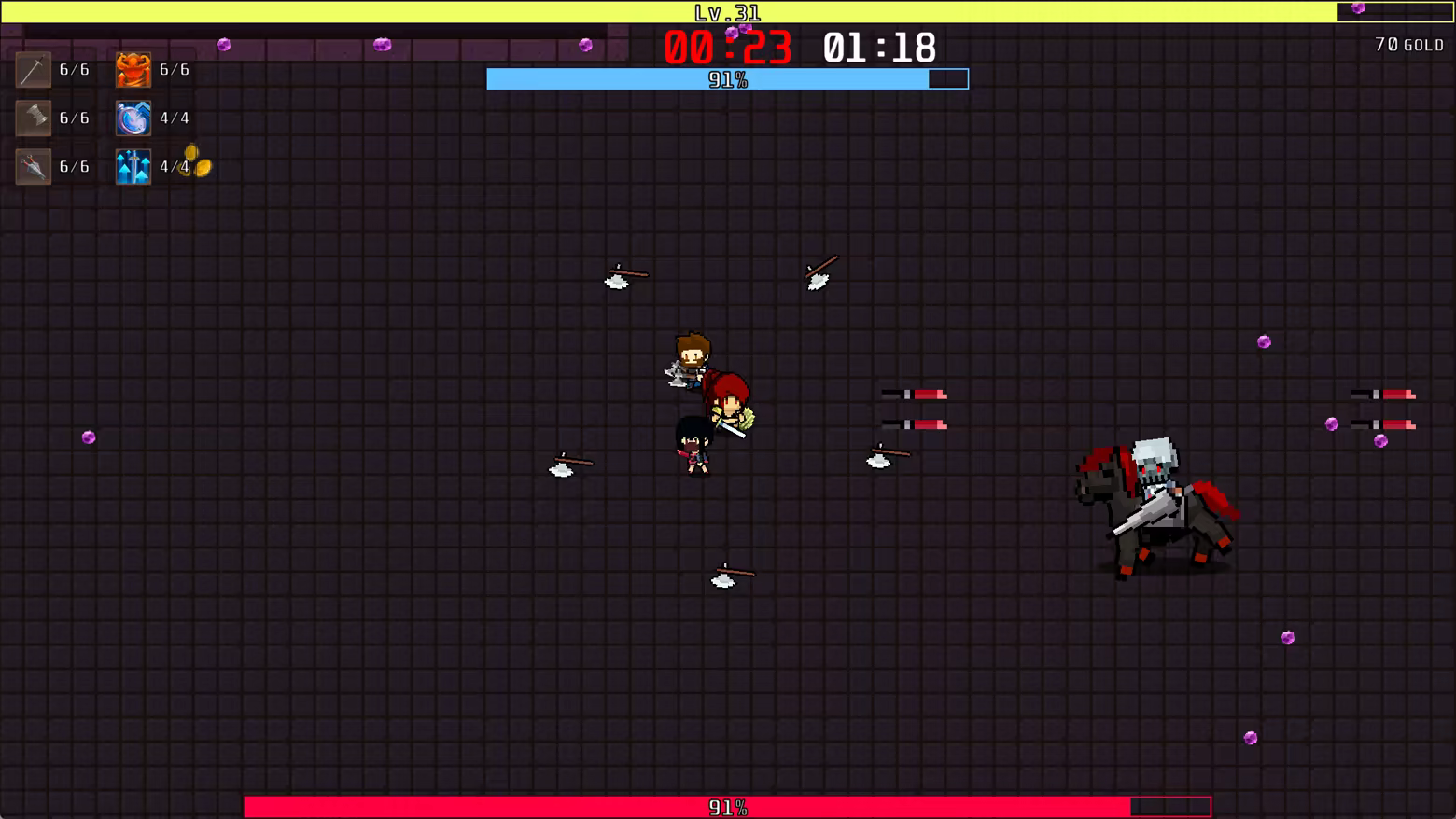 MAZE SURVIVORS is a survivor-style action game where you battle endless swarms of enemies within a deadly maze and fight to endure against time itself. Take command of adventurers such as the Knight, Mage, and Ninja to earn experience and treasure, leveling up and selecting skills to forge your ideal party. Weapons evolve with growth—longswords become mighty sacred blades, fireballs ignite into scorching magic bolts, and more.