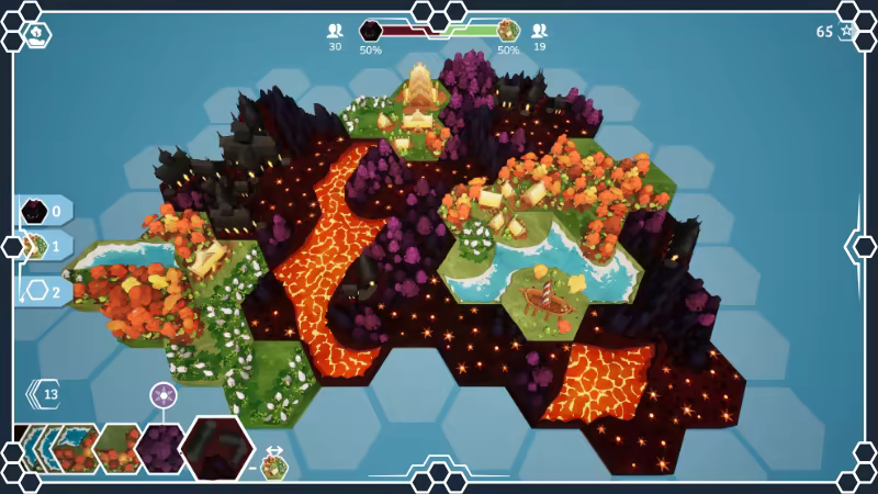 Connect hexagonal tiles to grow distinct biomes. Will you manage both landscapes in harmony, or pour your focus into one? Every approach leads to a unique outcome.