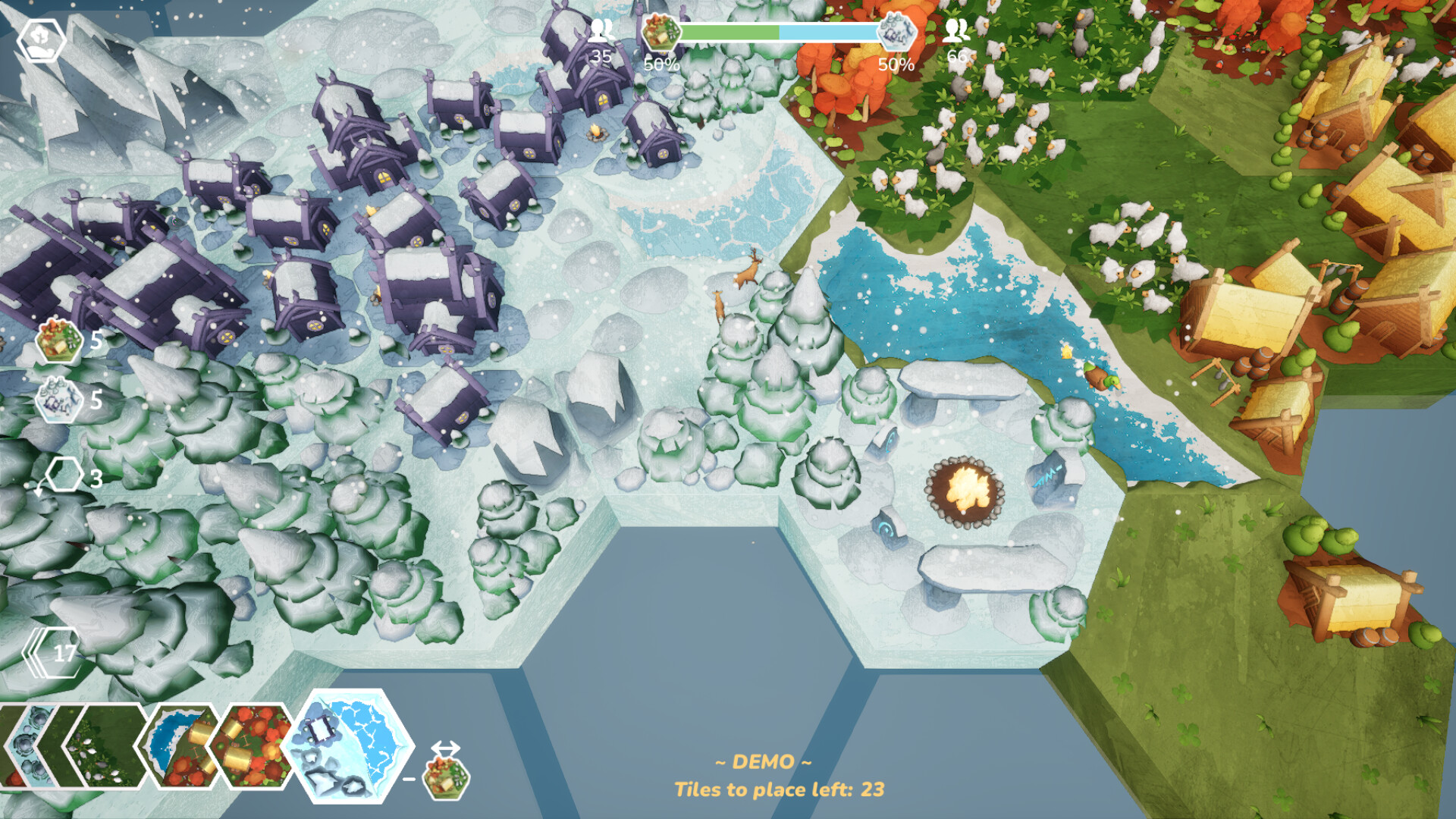 Connect hexagonal tiles to grow distinct biomes. Will you manage both landscapes in harmony, or pour your focus into one? Every approach leads to a unique outcome.