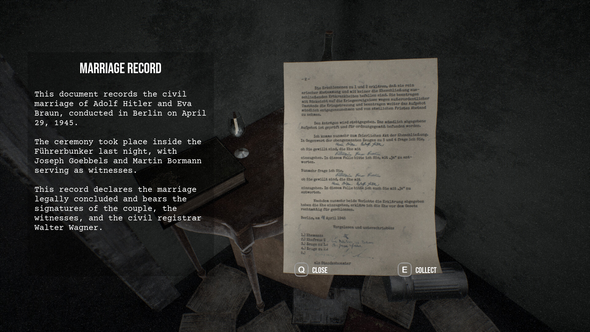 First-person puzzle game where you play as a Soviet soldier in the Battle for Berlin. Infiltrate a secret bunker, collect historical evidence, solve puzzles, and hide from top ranking Nazis. Your goal is to capture Adolf Hitler alive and make him face the consequences of his crimes.