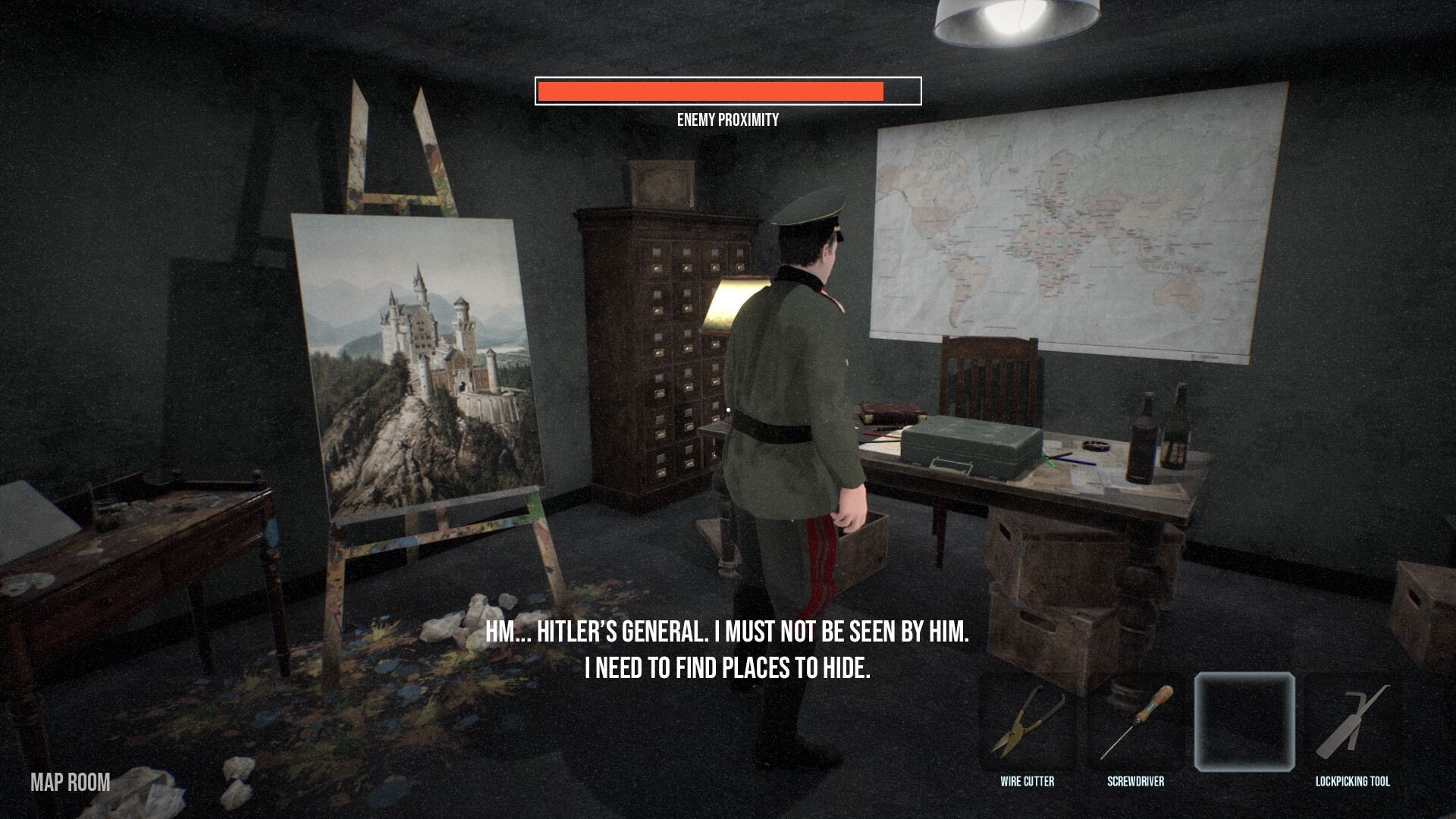 Bunker 1945 is a first-person puzzle adventure set in a historically inspired World War II bunker. Players explore and interact with their surroundings, solve intricate puzzles, engage in tense conversations with staff, and use stealth to avoid enemy patrols - all to capture the world's most evil man.