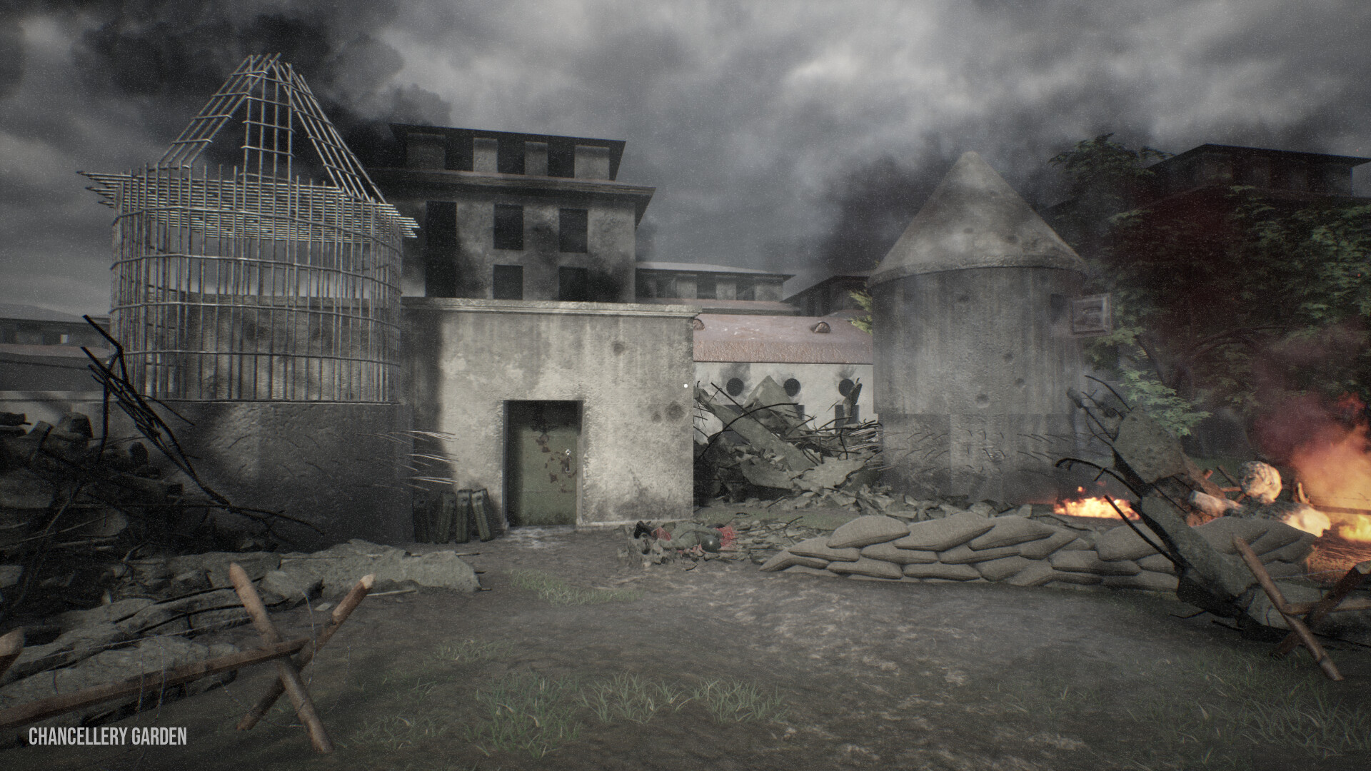 Out of 8 soldiers that departed from the Reichstag battlefield to go inspect the Chancellery, only one makes it through. Disoriented and terrified by constant fire, he stumbles upon the Reich’s Chancellery garden. In desperation to hide from artillery fire, the soldier makes a dash for a square concrete structure.