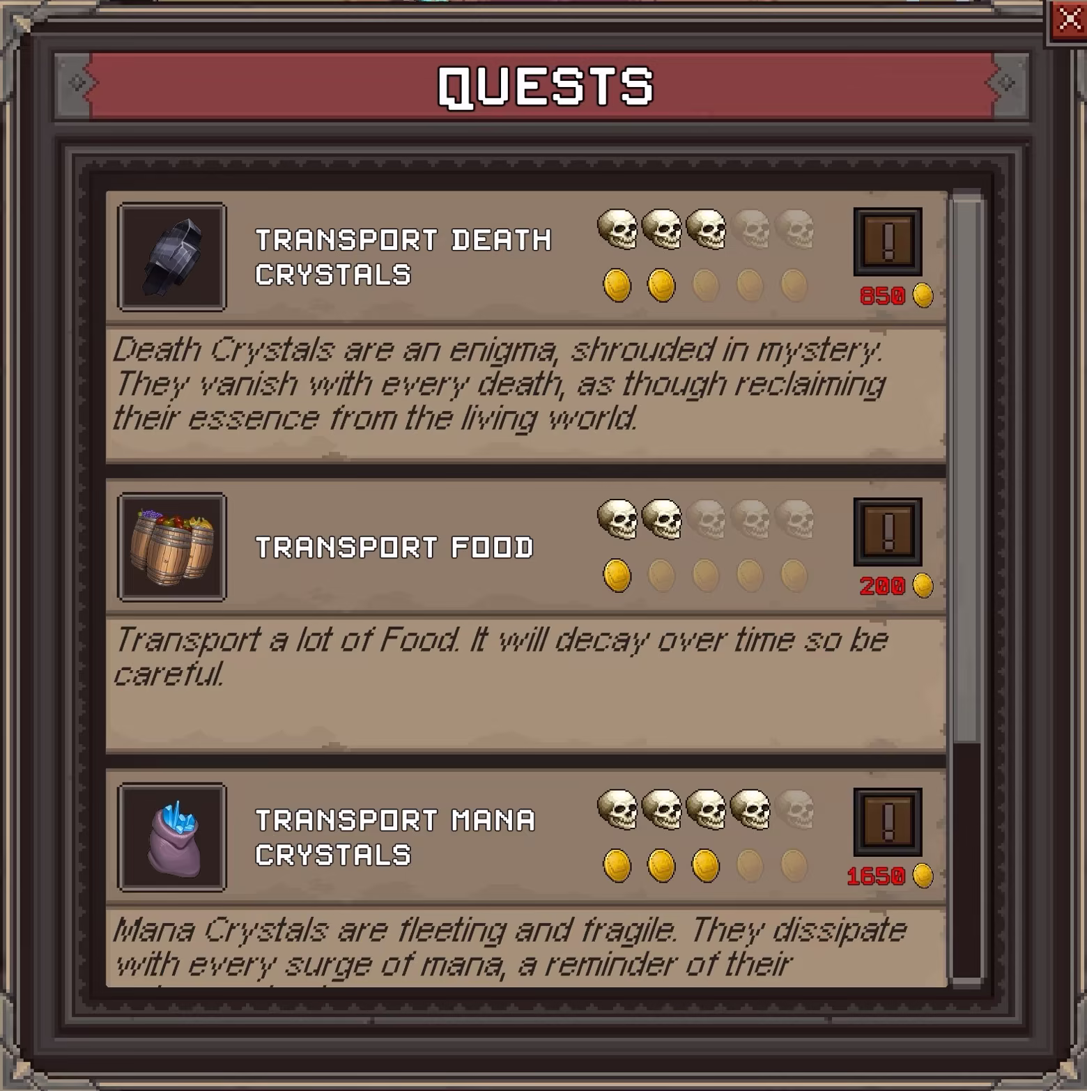 Quests are the backbone of your journey. Deliver royal messages, escort fragile cargo, and transport perishable goods under constant threat. Some tasks reward patience, others demand speed, and all test your ability to manage risk. Time, danger, and reward are tightly intertwined. Fail to plan, and even the simplest contract may become your last.