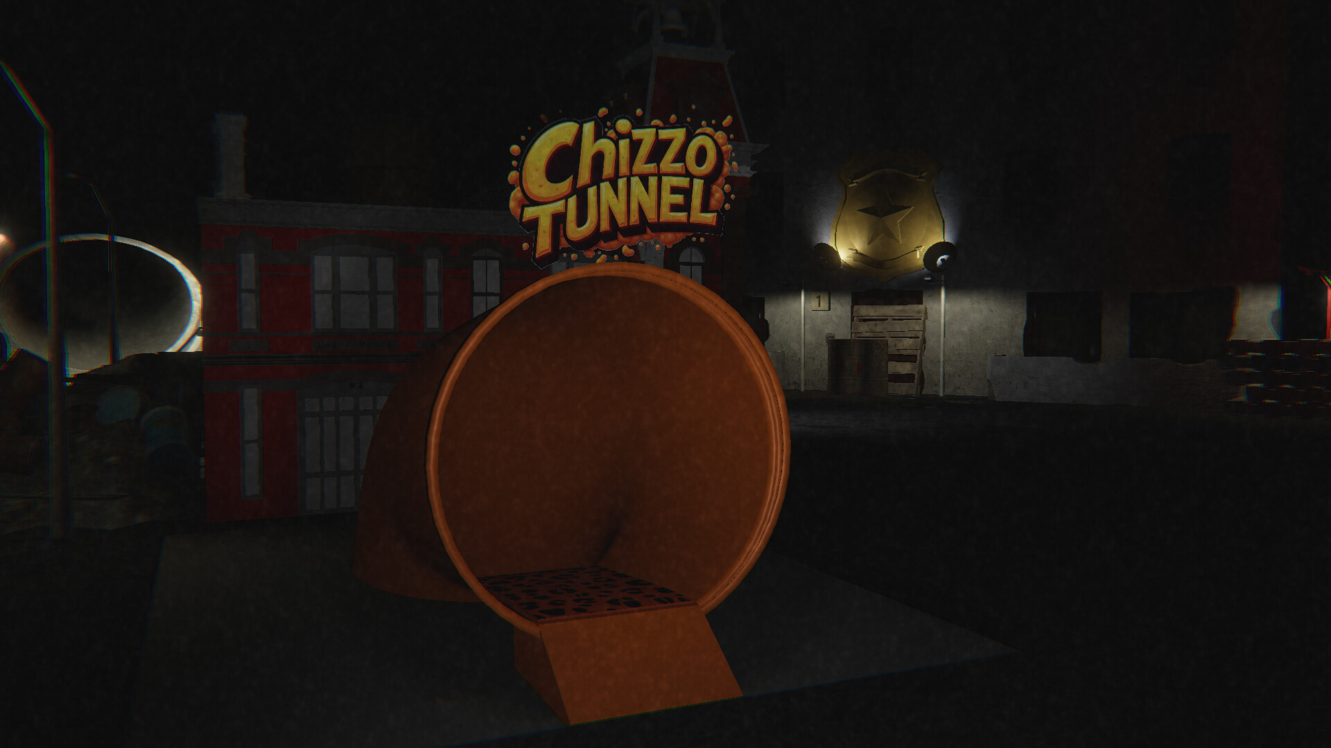 One of the attractions in the park is the Chizzo Tunnel. A short underground tunnel built by Chizzo Corp. to promote their new flavors of cheesy snacks.