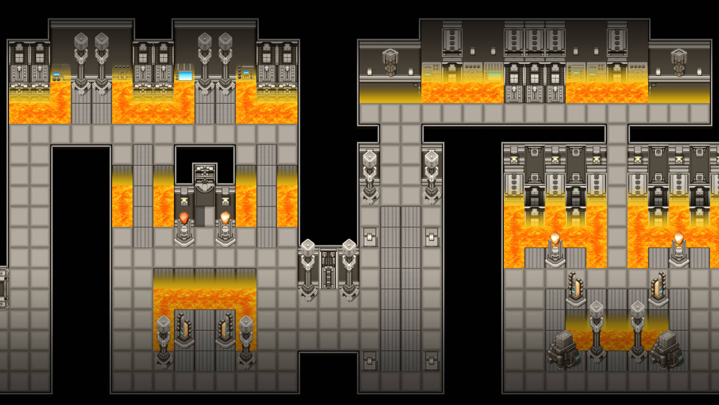 Give your heroes a magitech base to visit when they need to gather even more power to defeat the demon king with the KR Solar Base Tileset! Kokoro Reflections is here with a mirror to their lunar base set, this time offering us a MZ-sized tileset that has warmer tones and some burning hot lava. Build a space station located on a planet much too close to a star, or leave an ancient temple deep in a volcano for your heroes to find that gives them new and powerful equipment to take on any challenge.