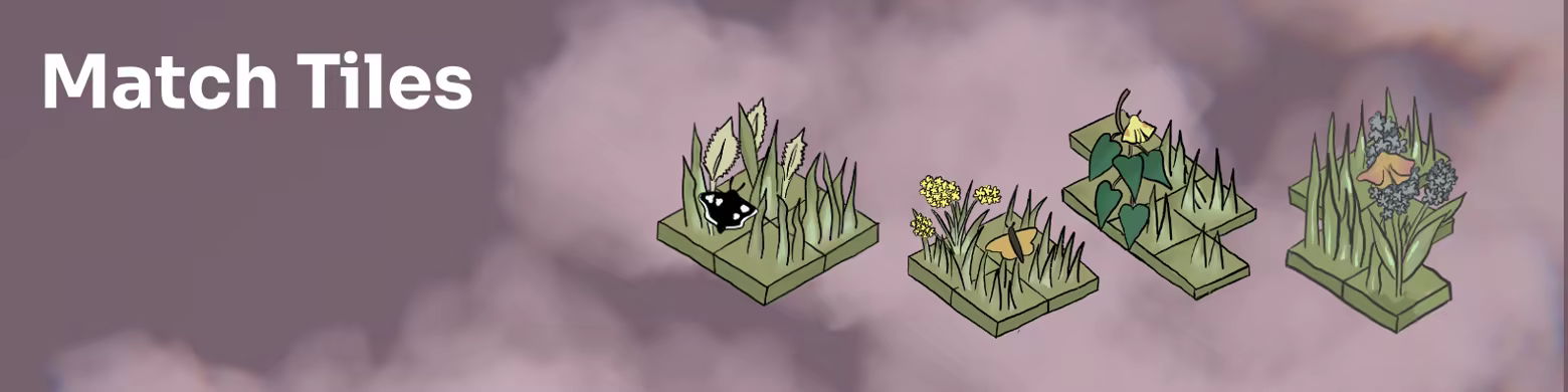 A tile-placing game about biodiversity, moths and our nighttime ecosystem. Explore different Biomes like moonlit meadows, sandy dunes and urban garden nightlife. Plant grasses, flowers, and ponds to create a biodiverse environment that will attract new species of moth friends to thrive. Combat urbanisation, artificial light and predators.