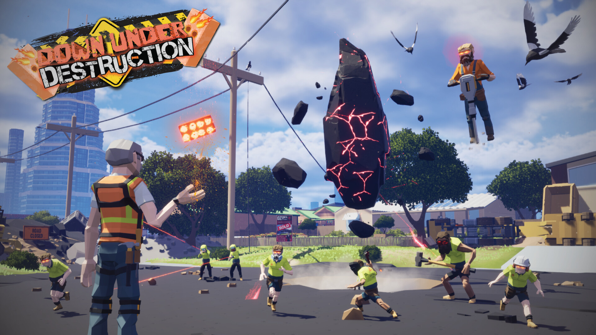 Down Under Destruction is a stylised first person action brawler with an Australian twist, featuring a vengeful bricklayer taking on a demonically influenced building corporation, one brick throw at a time.