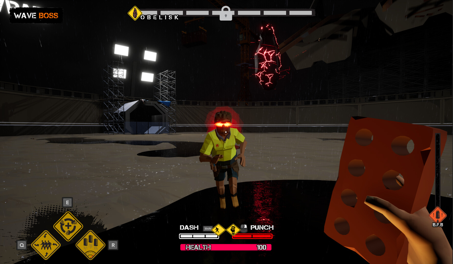 Down Under Destruction is a stylised first person action brawler with an Australian twist, featuring a vengeful bricklayer taking on a demonically influenced building corporation, one brick throw at a time.