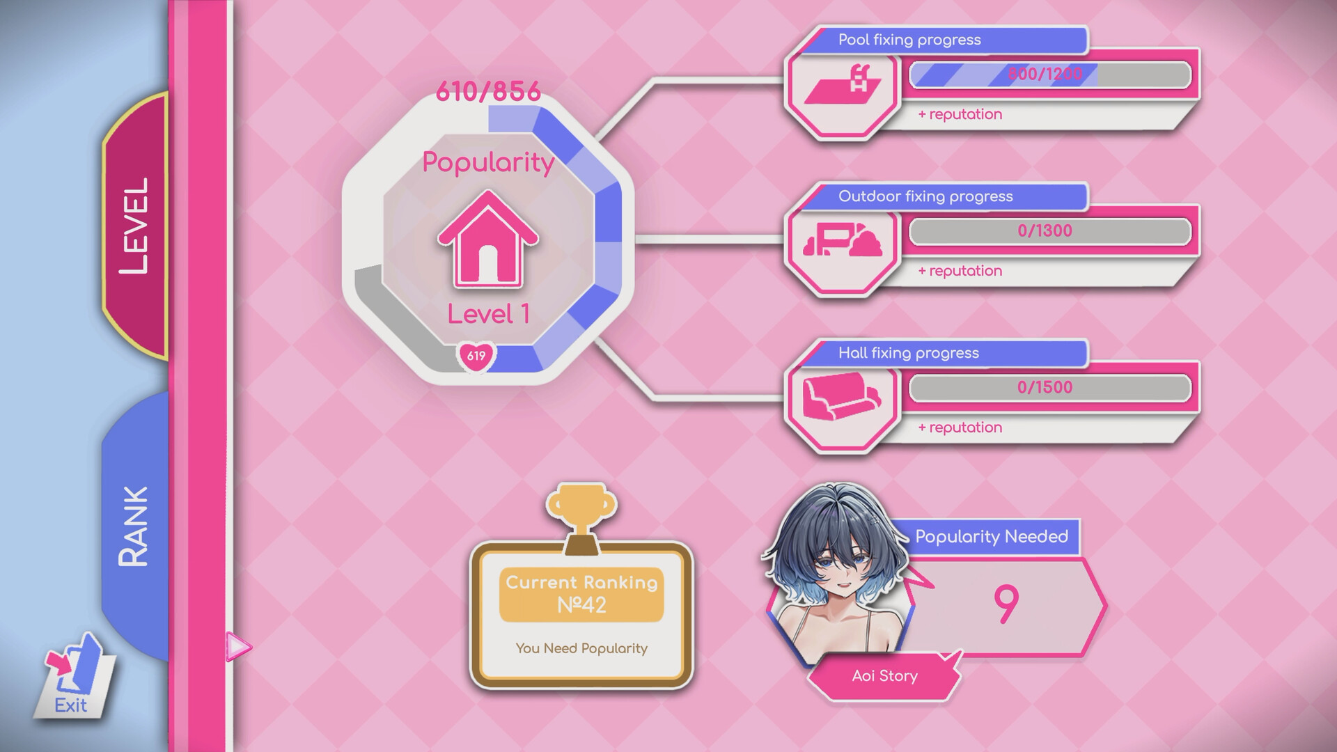 Each day is divided into two time periods, during which action points can be used to perform various actions. Focus on managing the pool to improve business and crush your competition. Of course, don't forget about cultivating relationships with hot babes by playing mini-games, and ultimately winning them over completely.
