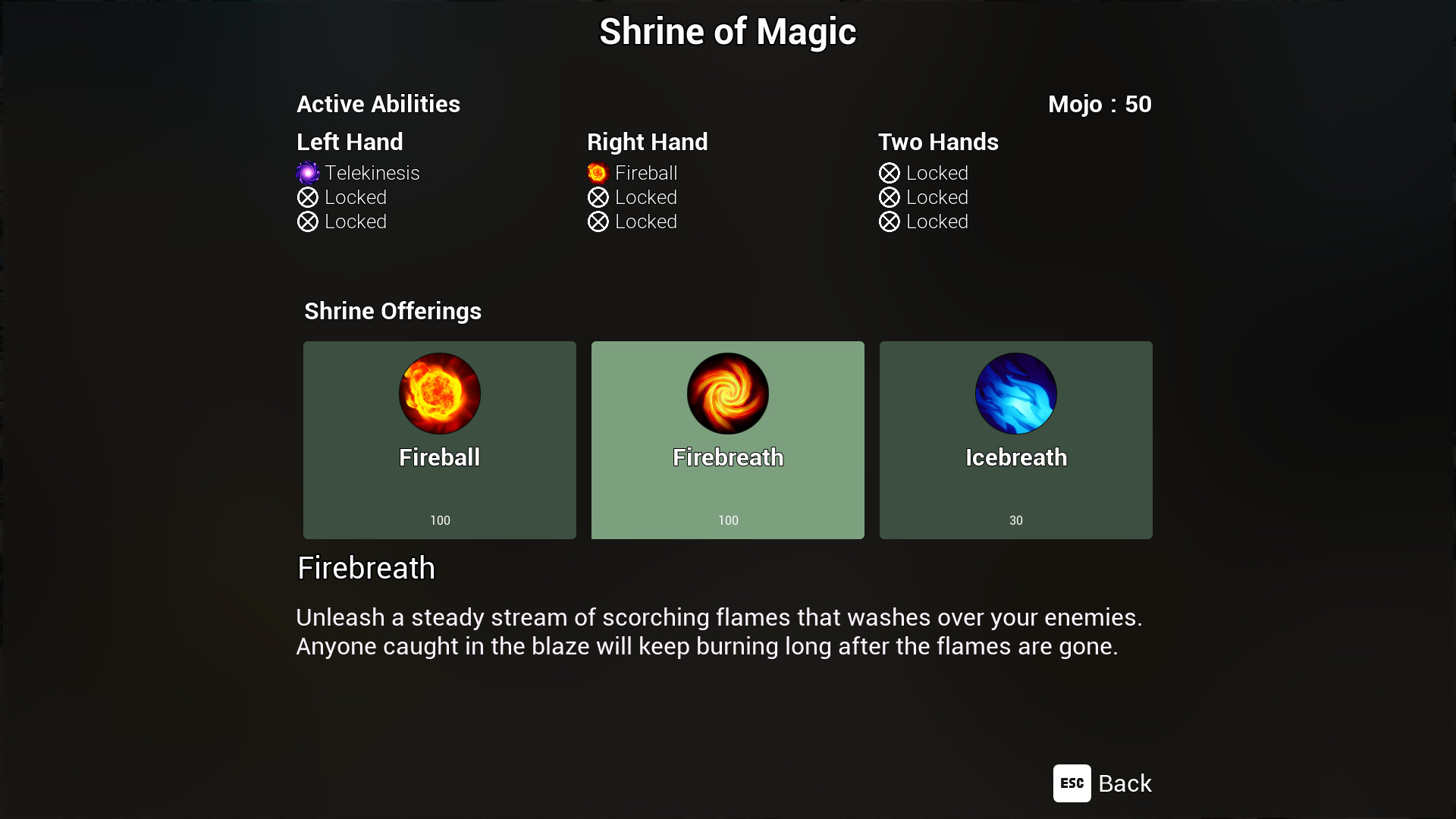 * Full meta-progression system with unlockable spells and weapons”