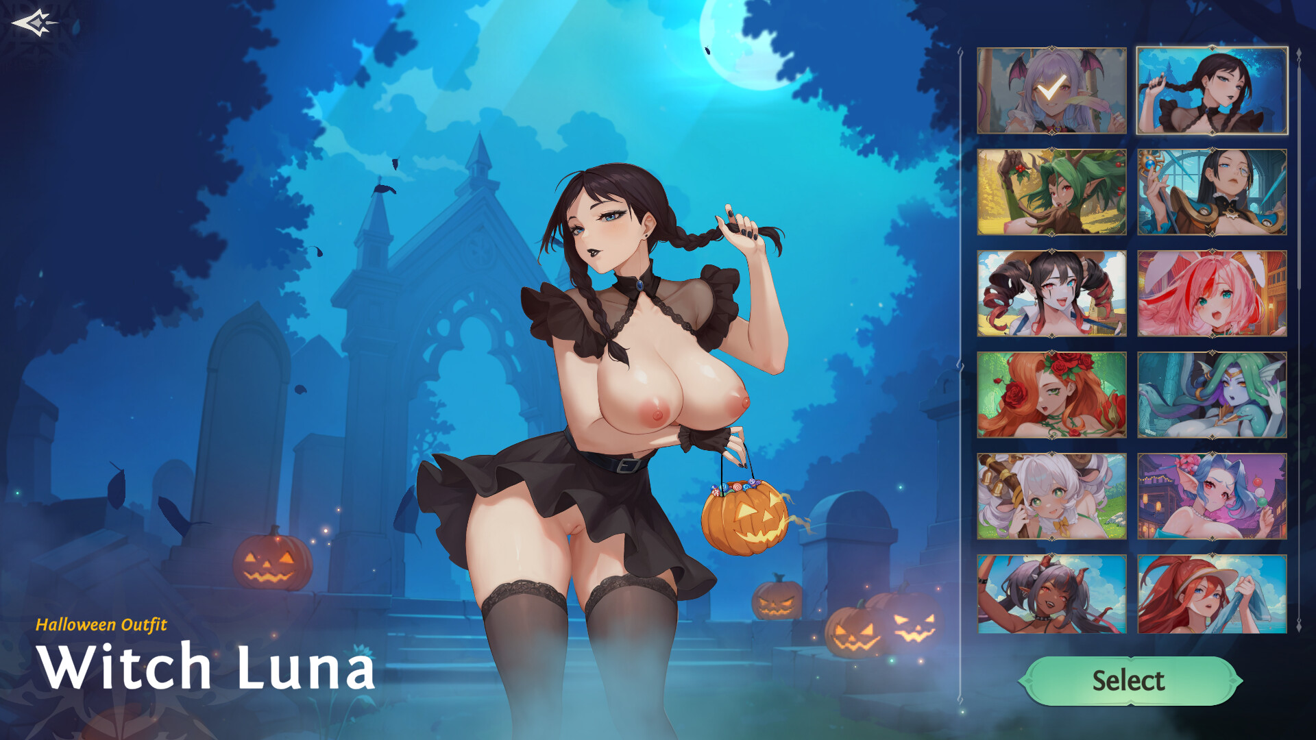 Want to conquer this sorceress? You'll have to take a risk! One wrong move, and you might fall victim to her spells. But if you're brave enough to endure the trials of the year's scariest night, Luna will open up to you—free, passionate, and shining with the beauty of the night.