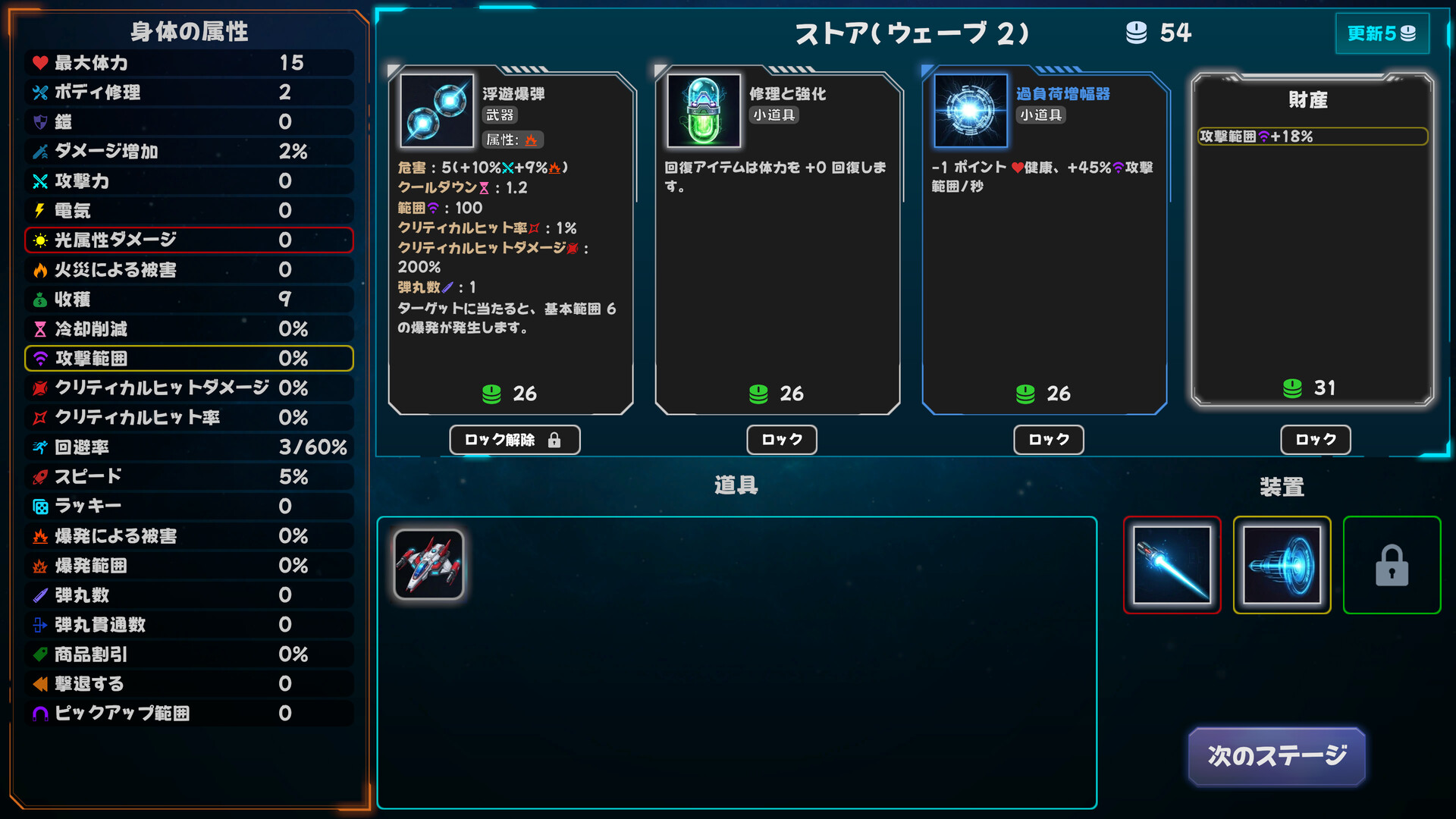 • 機体ステータスを消費して、武器の強力な属性(弾数、貫通など)を強化できる独自のシステム