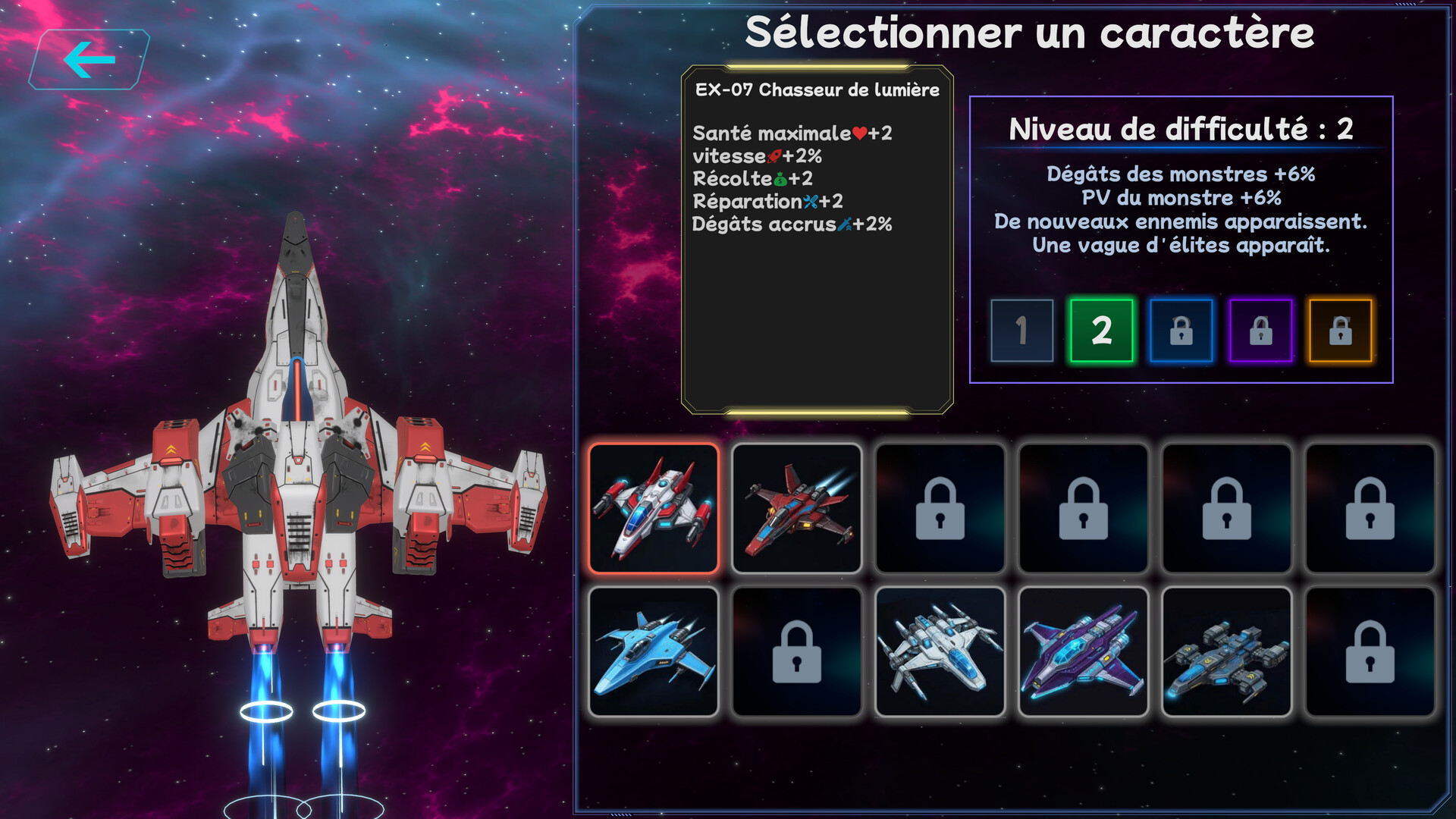 Au cœur de la vaste galaxie, vous êtes le dernier survivant. Des vagues d’ennemis affluent sans cesse. Votre seule mission est de survivre dans le temps imparti. Pilotez votre vaisseau pour combattre, collecter des ressources et améliorer vos armes et capacités