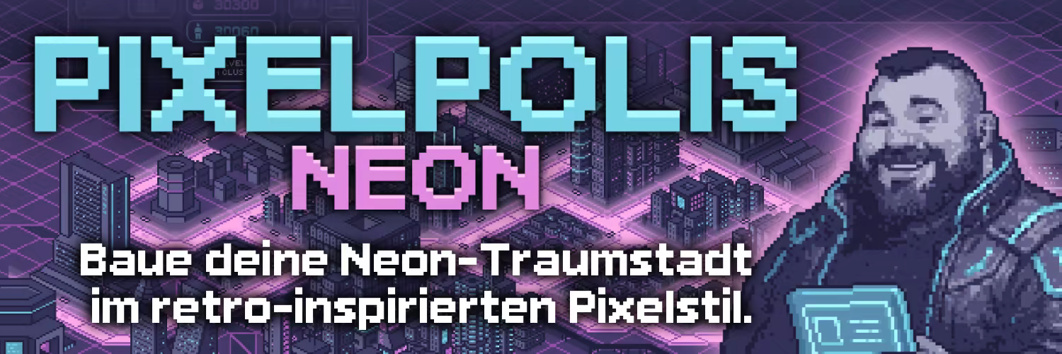 Pixelpolis Neon ist ein retro-isometrisches Städtebau-Spiel, in einer lebendigen Cyberpunk-Zukunft. Platziere über 400 handgezeichnete Pixel-Art-Gebäude, halte das Gleichgewicht zwischen Bevölkerung und Ressourcen und erschaffe deine eigene neon-leuchtende Traumstadt im Rythmus von Synthwave-Beats.