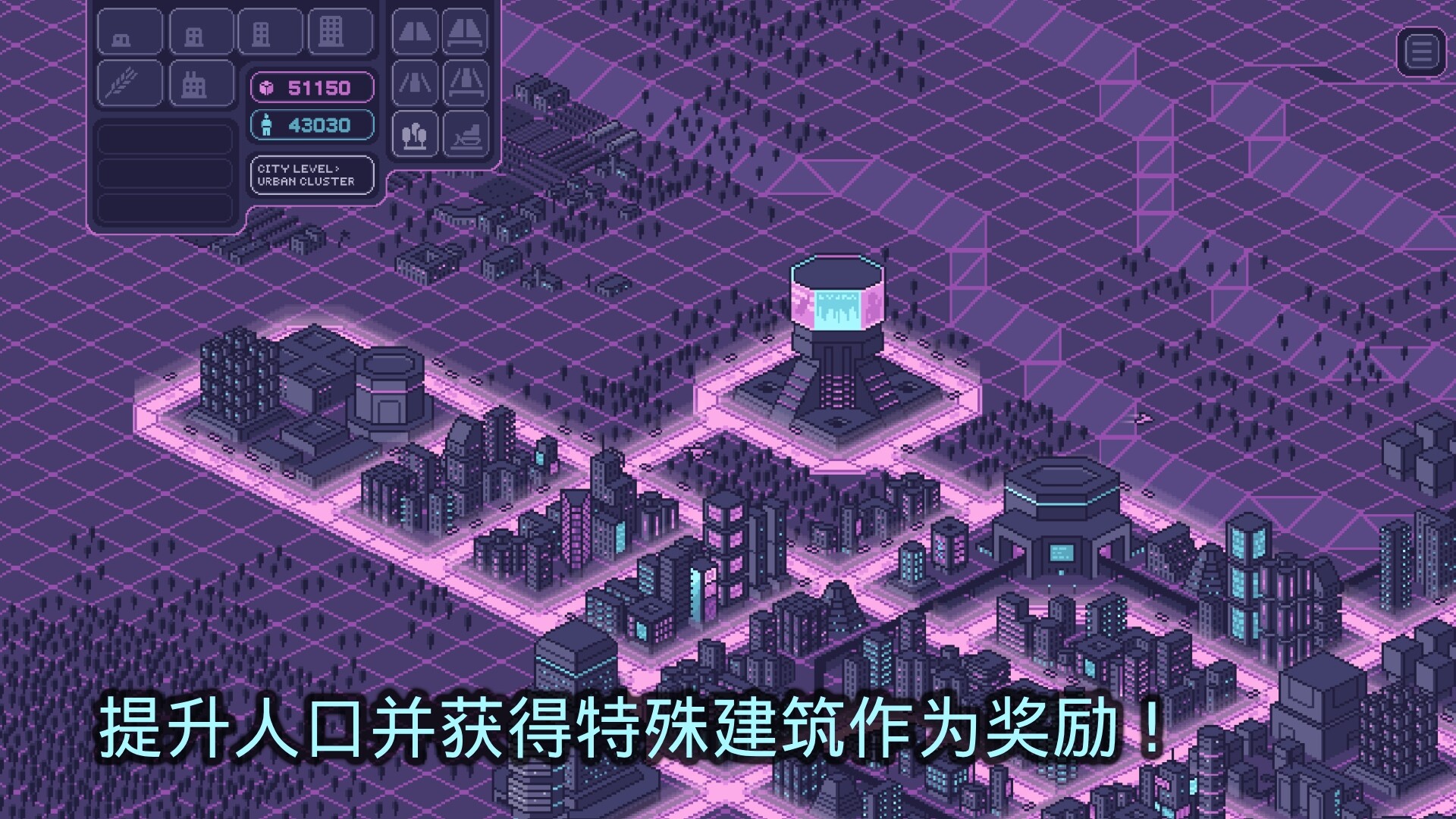 欢迎来到 Pixelpolis Neon —— 一款充满趣味的复古城市建造体验,灵感来自经典之作 SimCity 2000,在闪耀的霓虹赛博朋克世界中重新演绎。