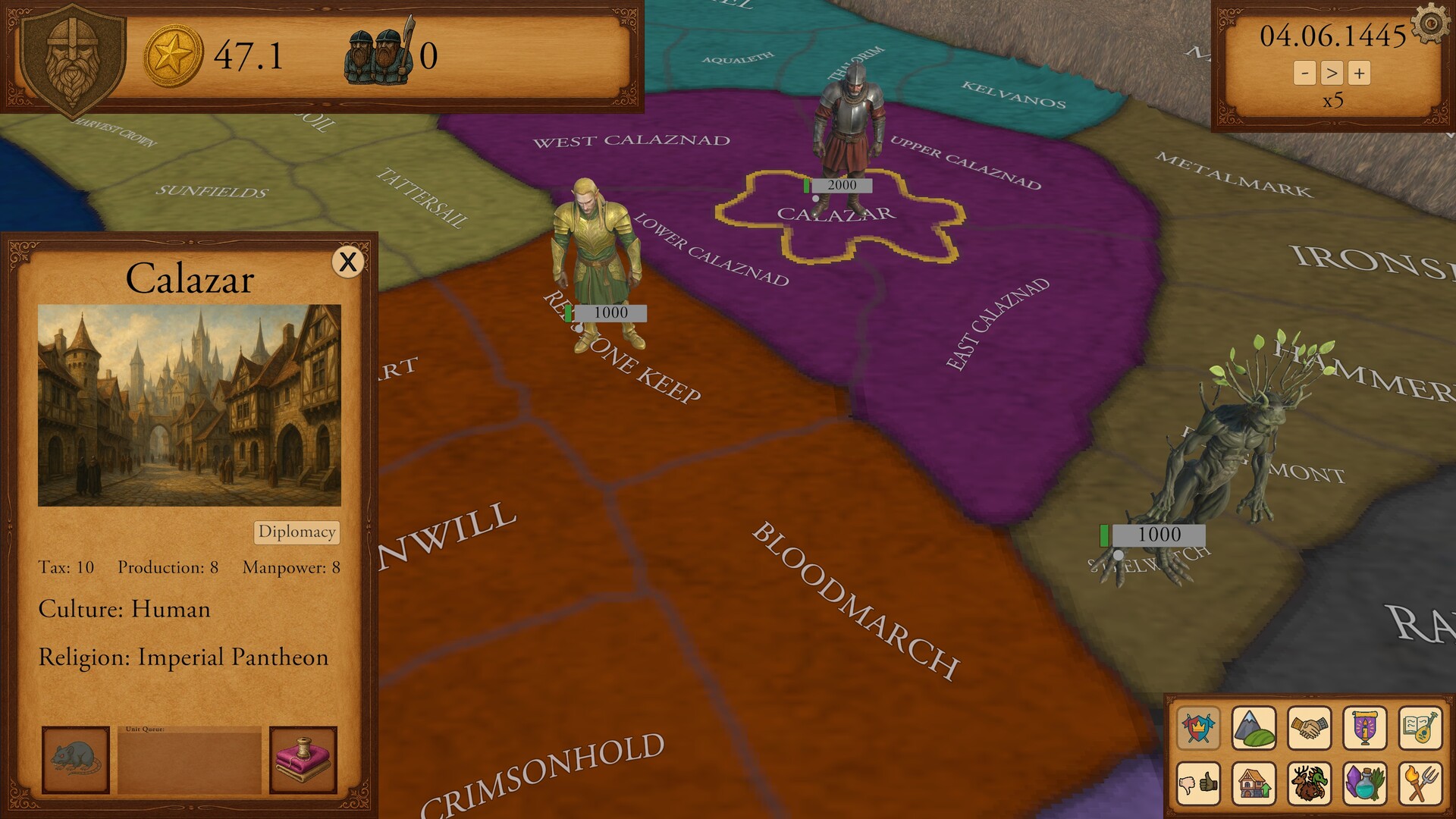 Quill & Sword: Fate of Eryndor is a fantasy grand strategy game where diplomacy, warfare, and ambition collide. Rule as a human king, dwarven thane, elven archon, or orc warlord—each with unique strengths, cultures, and challenges.