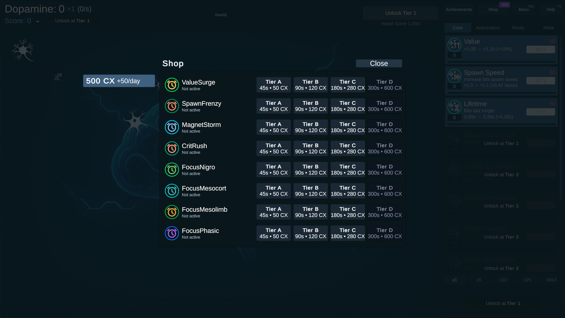 Start your Dopaminer journey with a boost of CX, the premium resource that fuels powerful temporary boosters.
