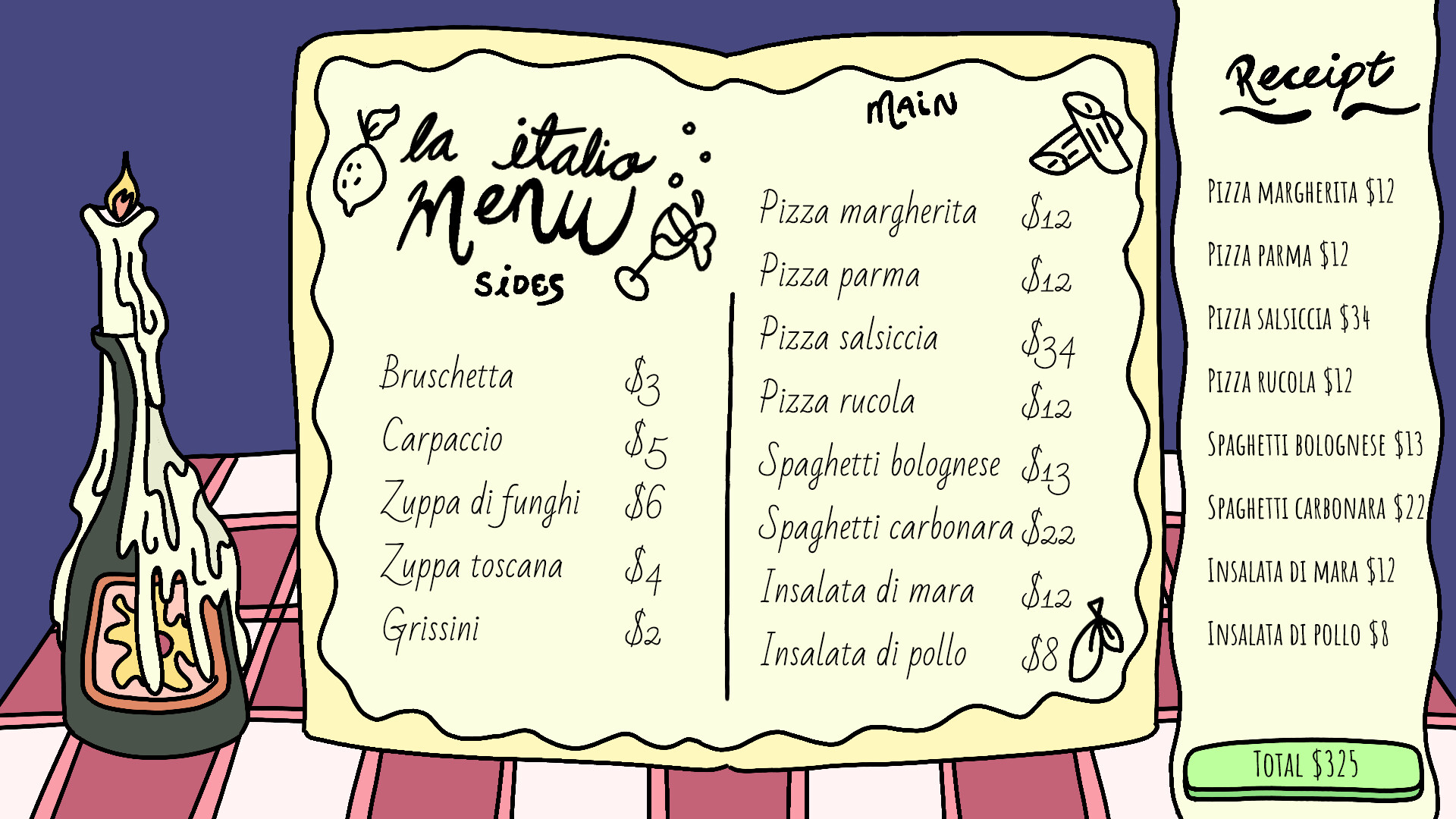 Meet Menu is a cute and silly dating game about getting the most value out of your date who is paying for dinner!