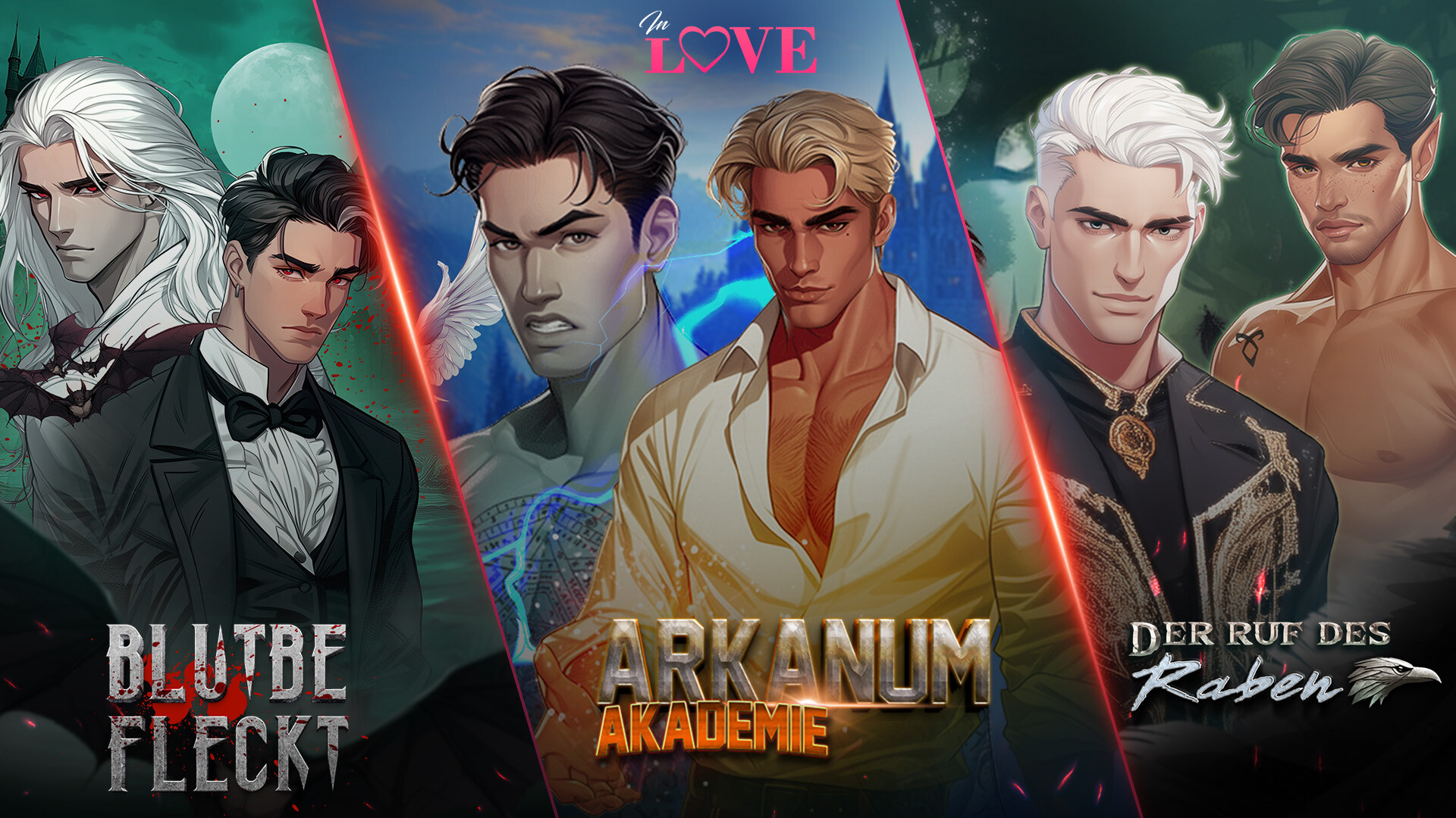 Tauchen Sie ein in die fesselnde Welt von IN LOVE: Mystic Passions Pack, einer Sammlung, in der Liebe auf das Übernatürliche trifft. In A Raven’s Call bindet Sie ein dunkles Schicksal an eine geheimnisvolle Präsenz. In Bloodstained erleben Sie eine verbotene Romanze, in der Leidenschaft und Gefahr verschmelzen. Schließlich entführt Sie Arcanum Academy in eine magische Welt voller Geheimnisse und Emotionen.