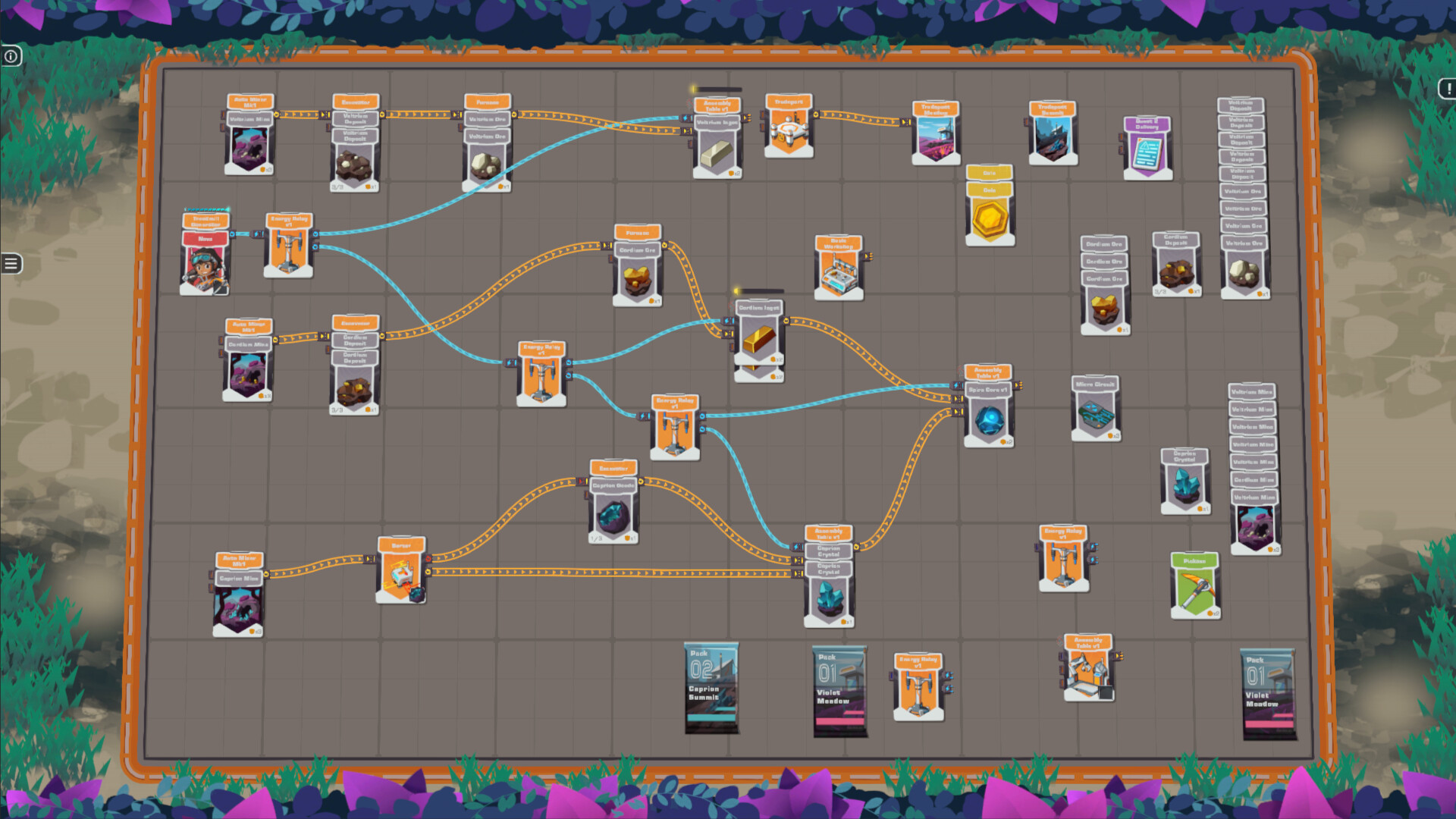 Routers, sorting, storage, energy, liquids, waste management — every core feature of a true automation game, reimagined entirely through cards.