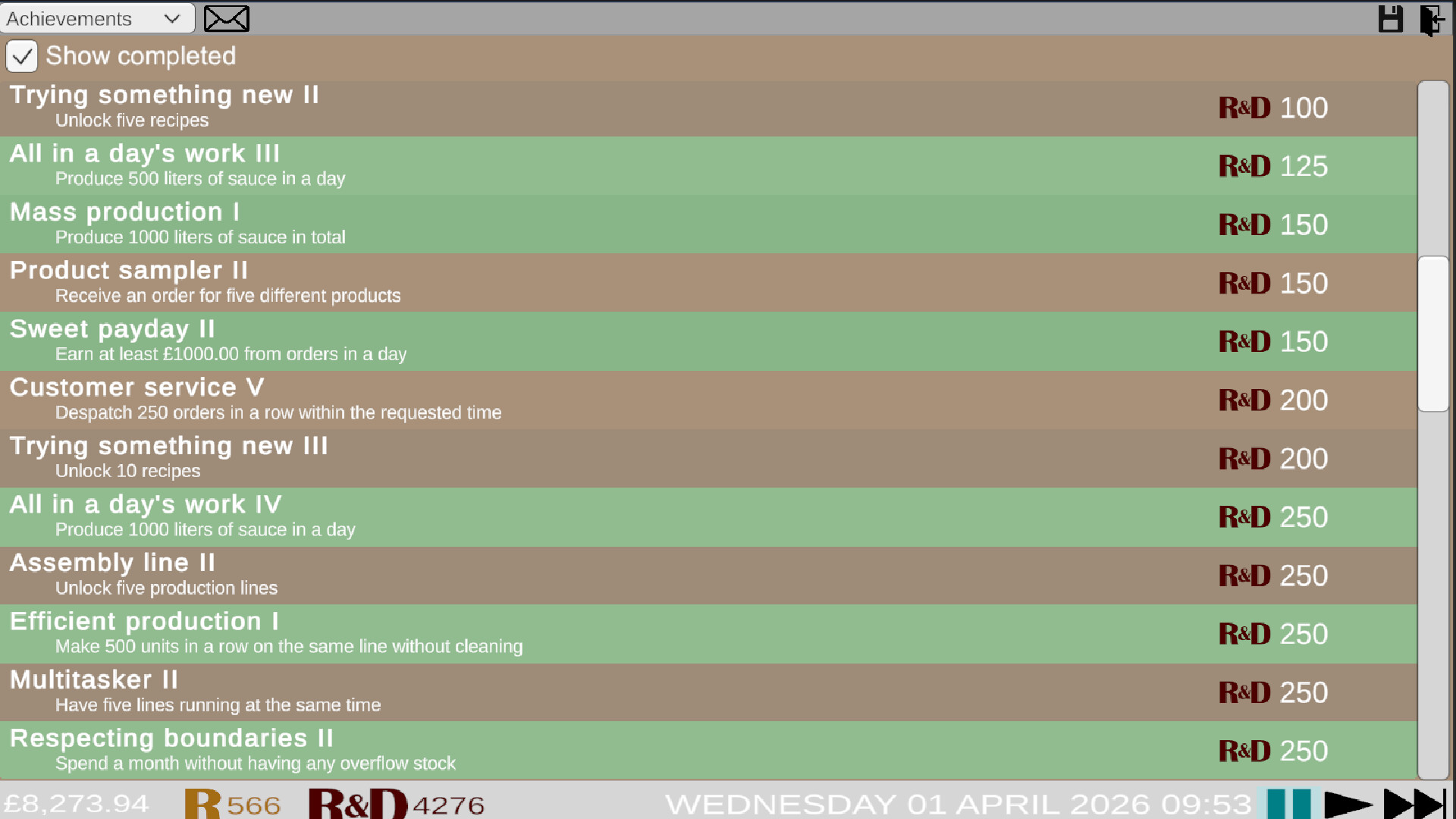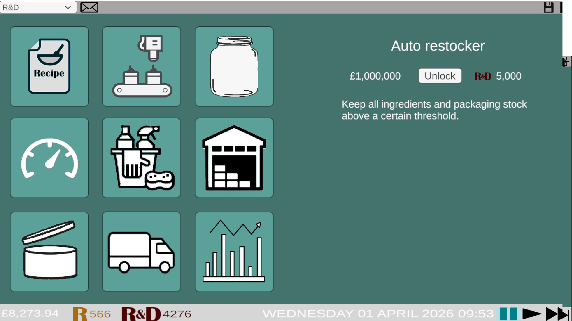 • 👩‍🔬 Research & Development – Unlock new recipes, pack sizes, and upgrades through your tech tree.
