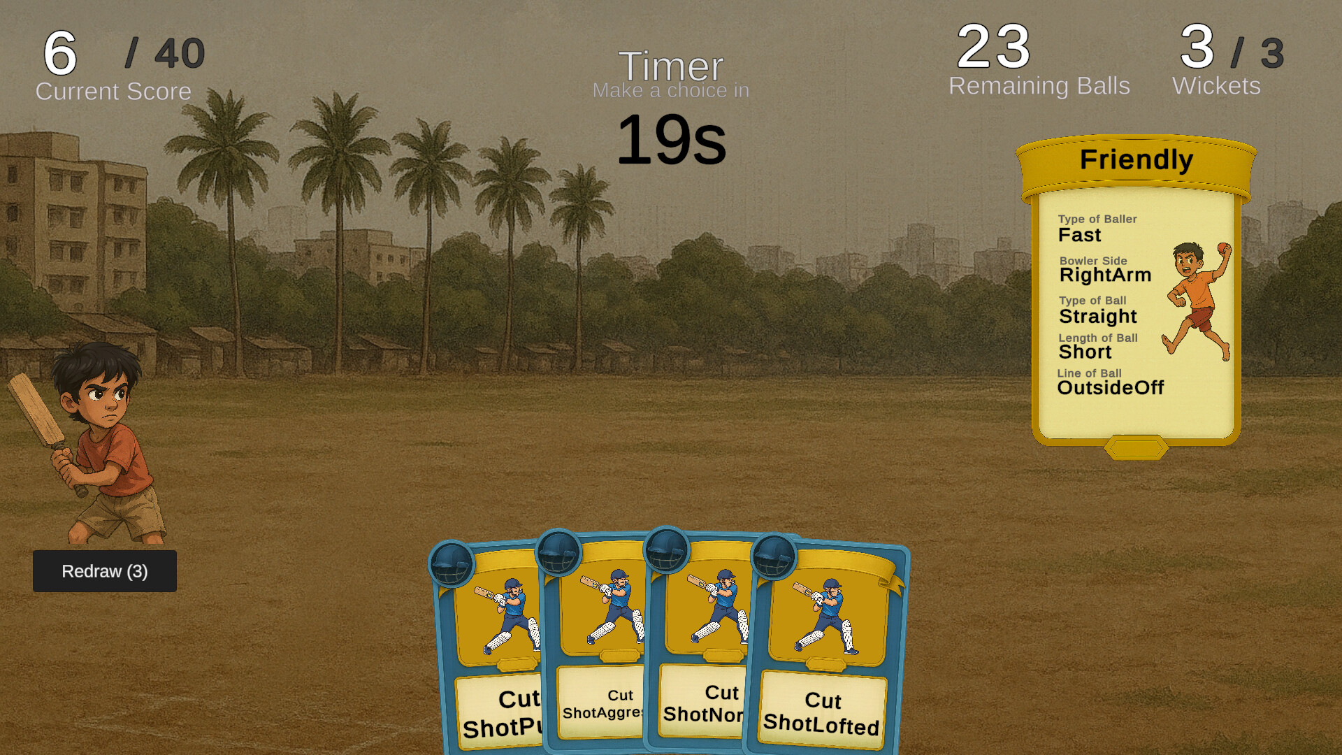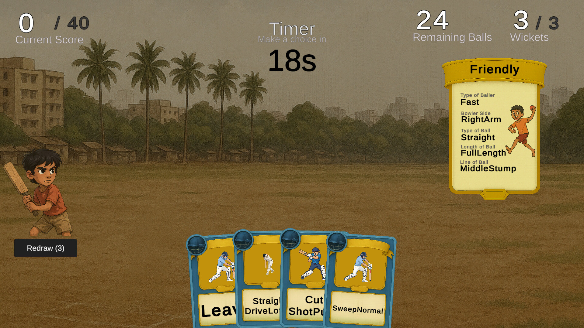 Gully Champ is a unique blend of visual novel storytelling, card-based strategy, and open-world RPG elements that tells the emotional journey of a young cricket prodigy fighting against all odds to reach the pinnacle of international cricket.