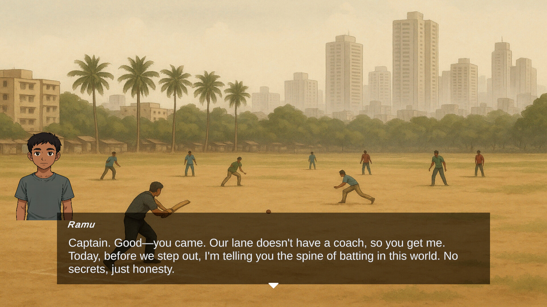 Your journey begins in the narrow lanes of Mumbai's slums, where dreams are as scarce as opportunities. But you have something special – an unbreakable spirit and a passion for cricket.