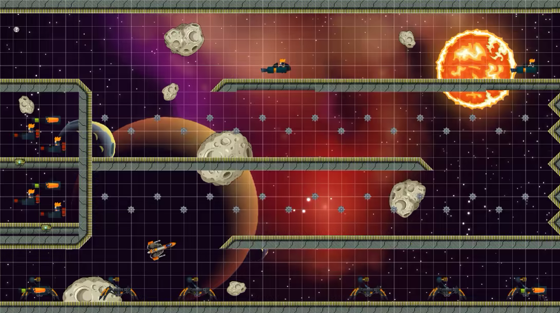 After being abducted by a maniacal cyberbot, you must fight your way through a hundred levels of nebulous arenas in your spacecraft to escape. A mouse-controlled, 1366 x 768 indie-game adventure. Prepare to face turrets, mines, asteroids and mechanical krabs intent on thwarting your escape!