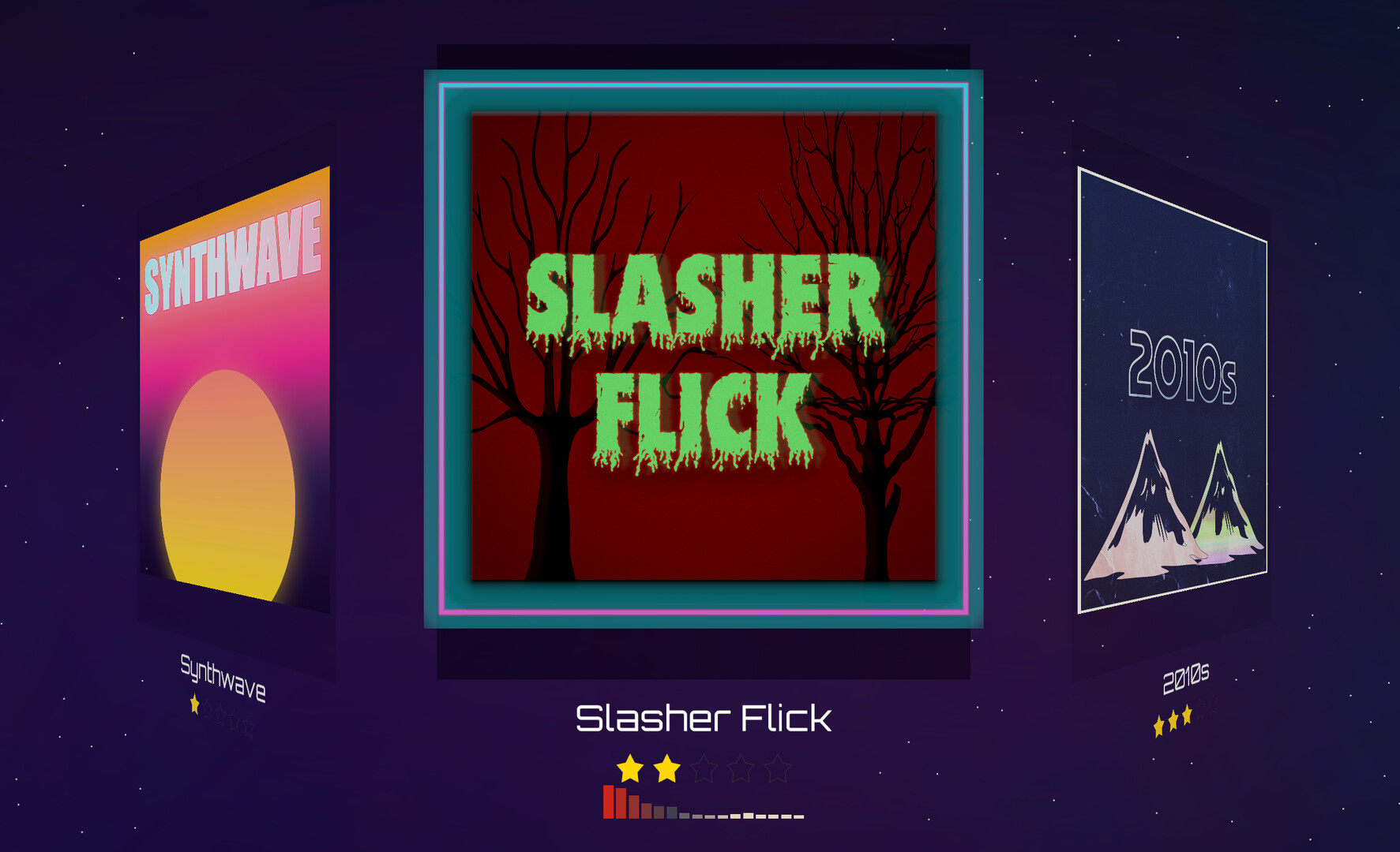 • Slasher Flick: Tense synths, creeping dread, and horror movie intensity.