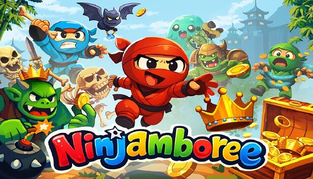 Ninjamboree is a chaotic online party‑PvP arena where four players compete to see who can collect the most treasures. Each round, one player becomes the Ninja, racing through a retro‑inspired level packed with traps, puzzles, and neutral monsters. The other three players become super monsters, teaming up to stop the Ninja’s run.