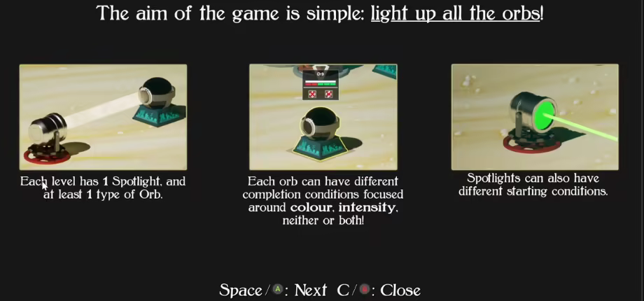 Illuminate your curiosity and explore a different world in this isometric, cosy puzzle game which ascends in difficulty, yet comforts the mind. Successfully guide the spotlight to a mysterious orb, and adventure through biomes as you complete levels!