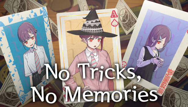 "No Tricks, No Memories" is a card-based adventure game in which you interact with a girl trapped inside a playing card.
