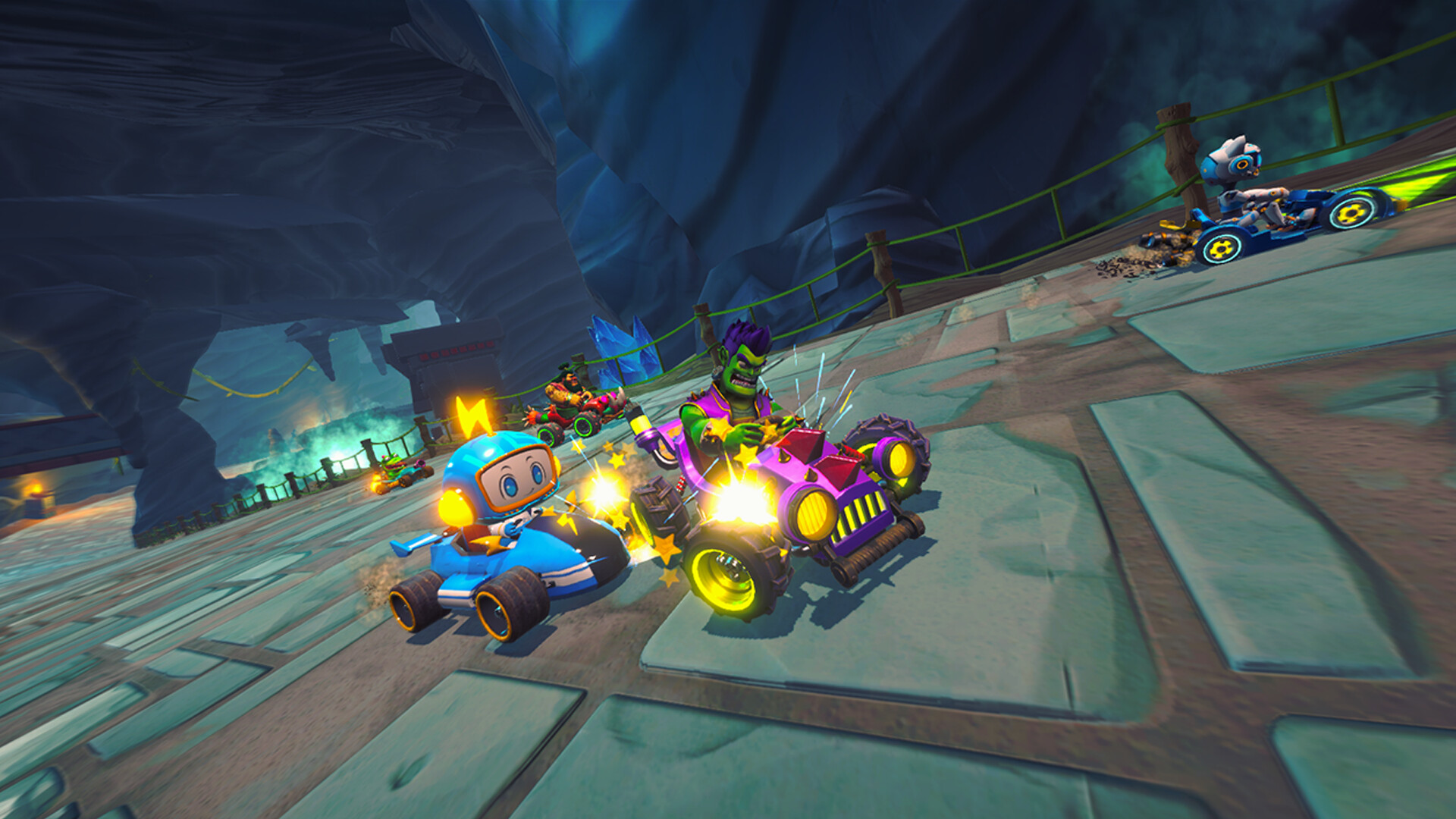 Secure victory by being the first to cross the finish line through actions such as activating item skills, accelerating, and drifting.