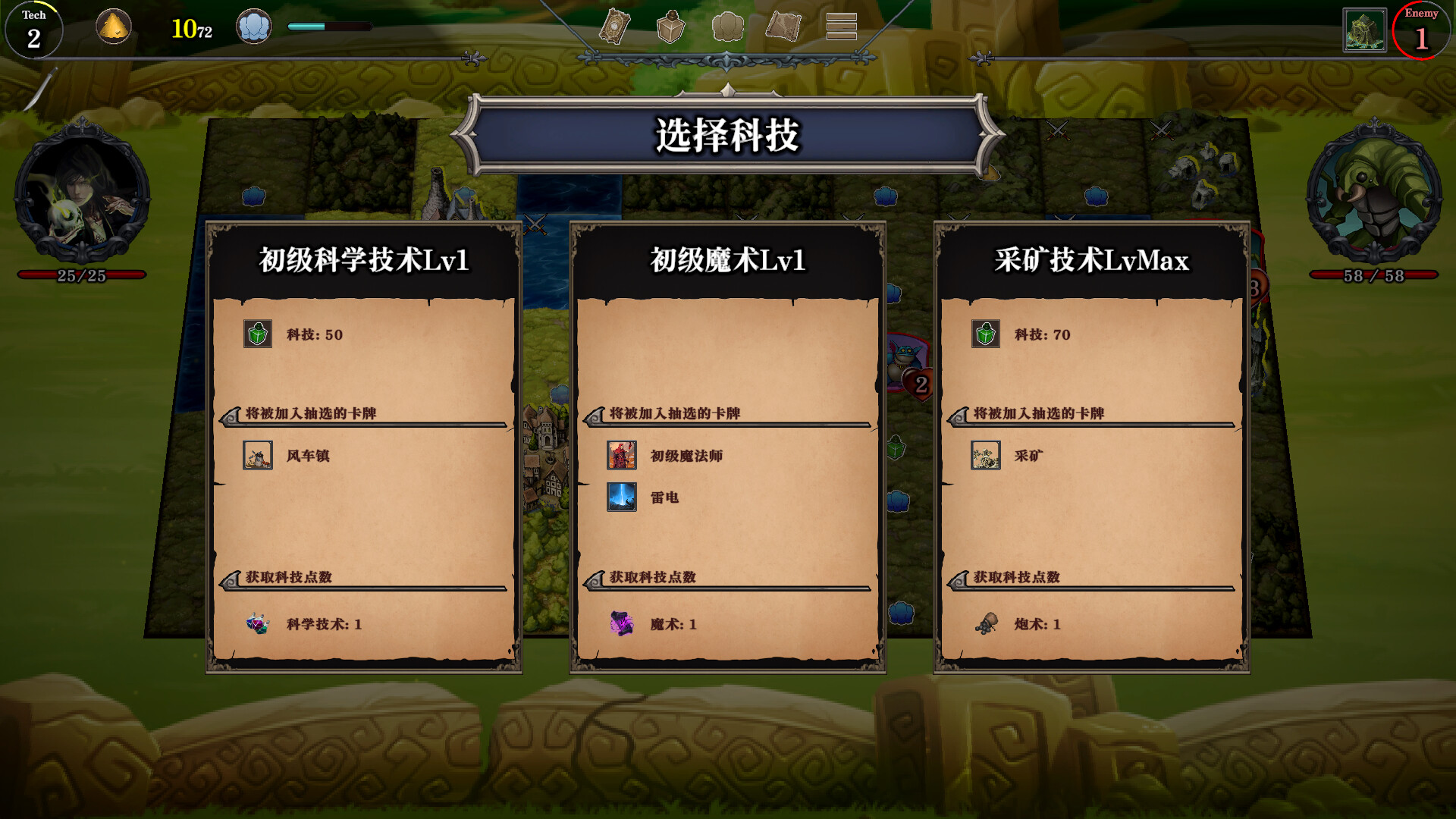 ·科技点数:达到一定程度即可掌握新的科学技术,增加能够抽取的卡牌种类。