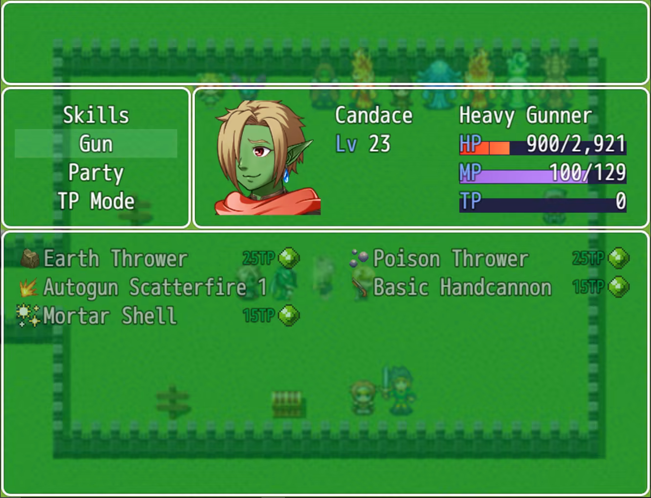 Candace is a kind hearted artificer who knows how to defend herself. Most of her skills are themed around her various firearms, allowing her to hurl damage and status effects at any enemy on the battlefield. She has a few buff skills with her primary focus being on damage and leaning how to combo her different skills for maximum effect.