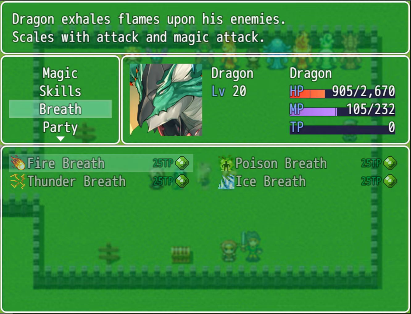 Dragon: Dragon gains the Flight status (+25% evasion, +10% crit chance, +10% hit rate)