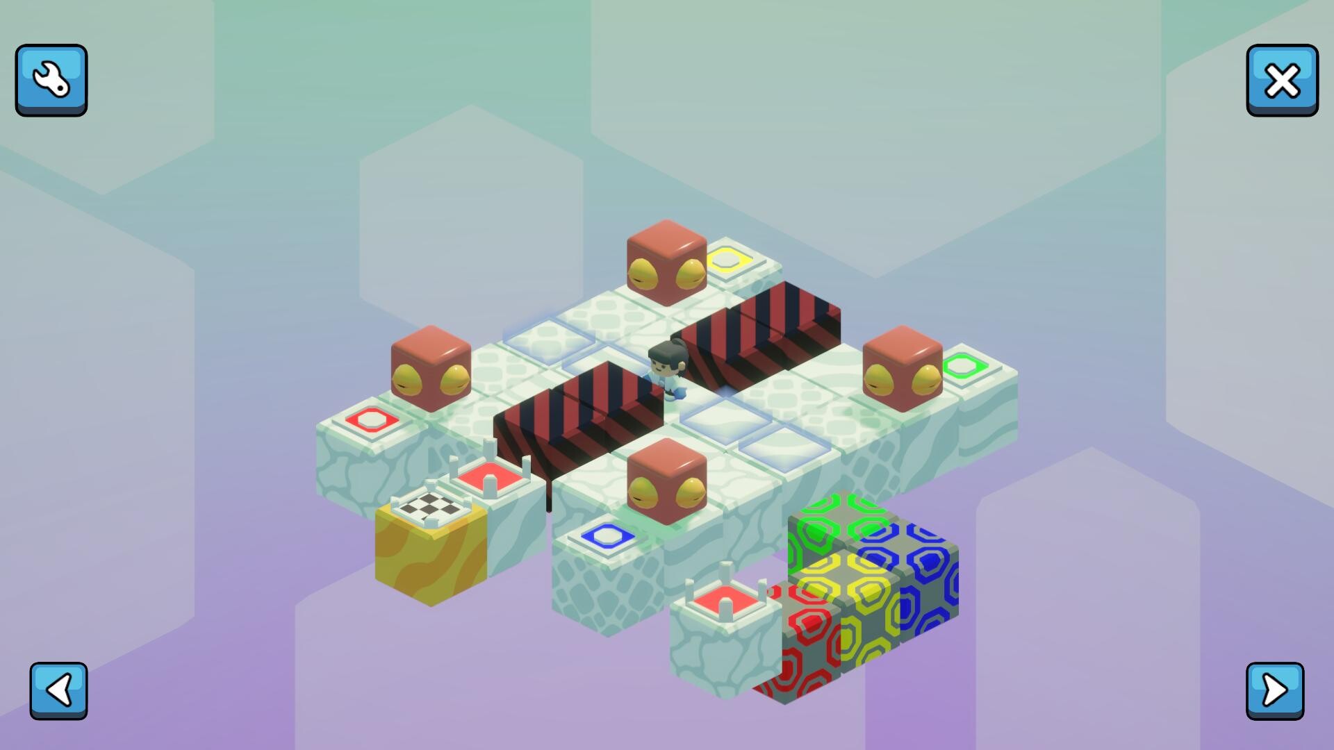 • Slider: Conveyor-style tile that pushes you in a fixed direction, as long as nothing blocks the path.