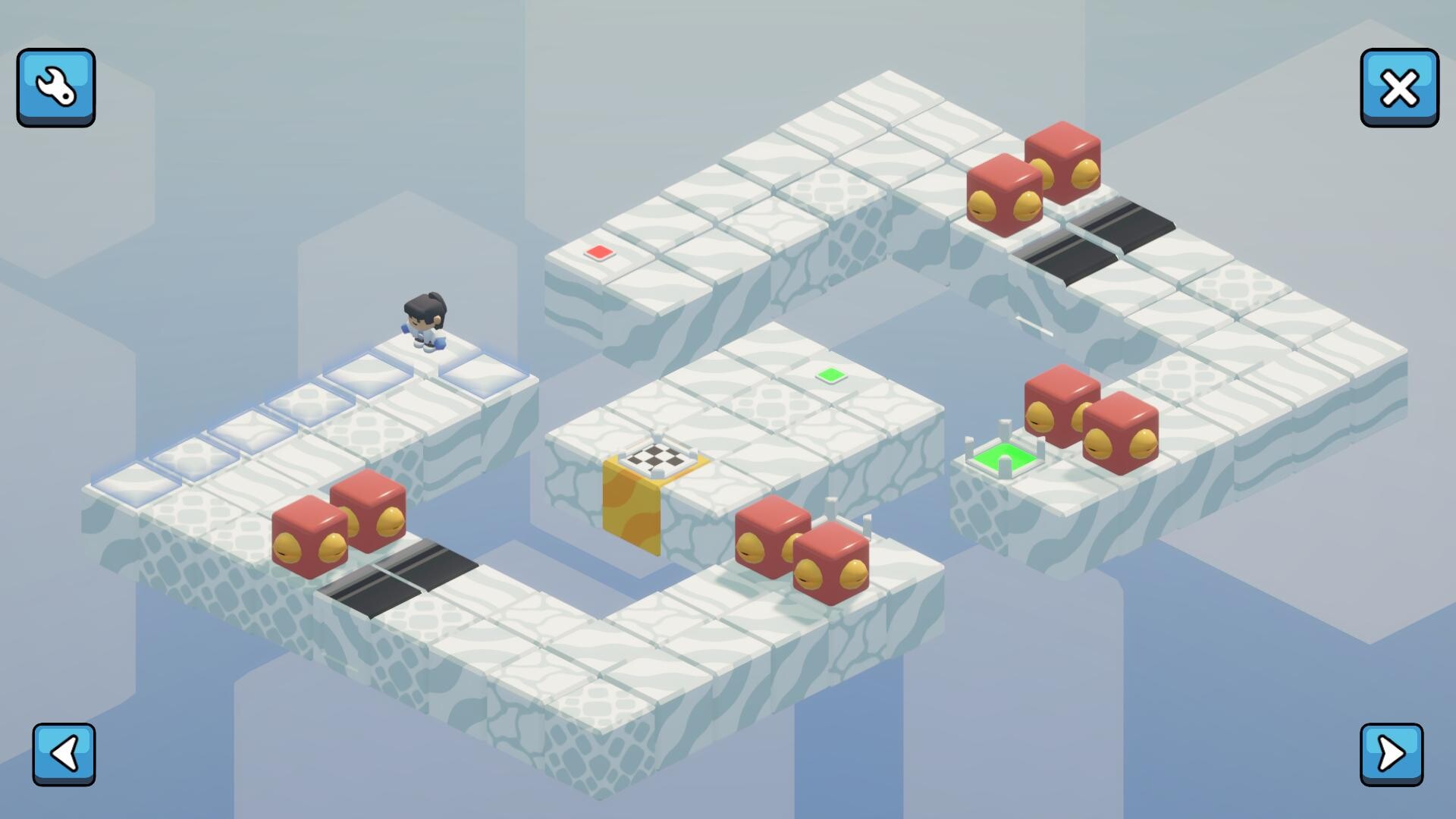 • Slider: Conveyor-style tile that pushes you in a fixed direction, as long as nothing blocks the path.