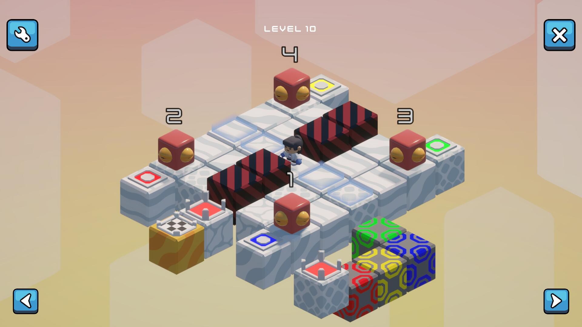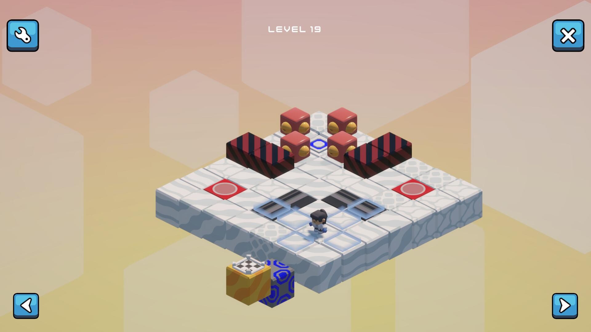 • Slider: Conveyor-style tile that pushes you in a fixed direction, as long as nothing blocks the path.