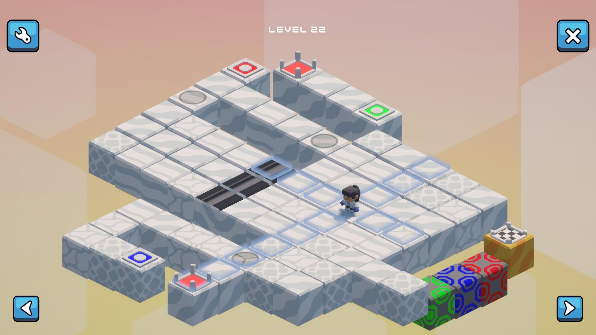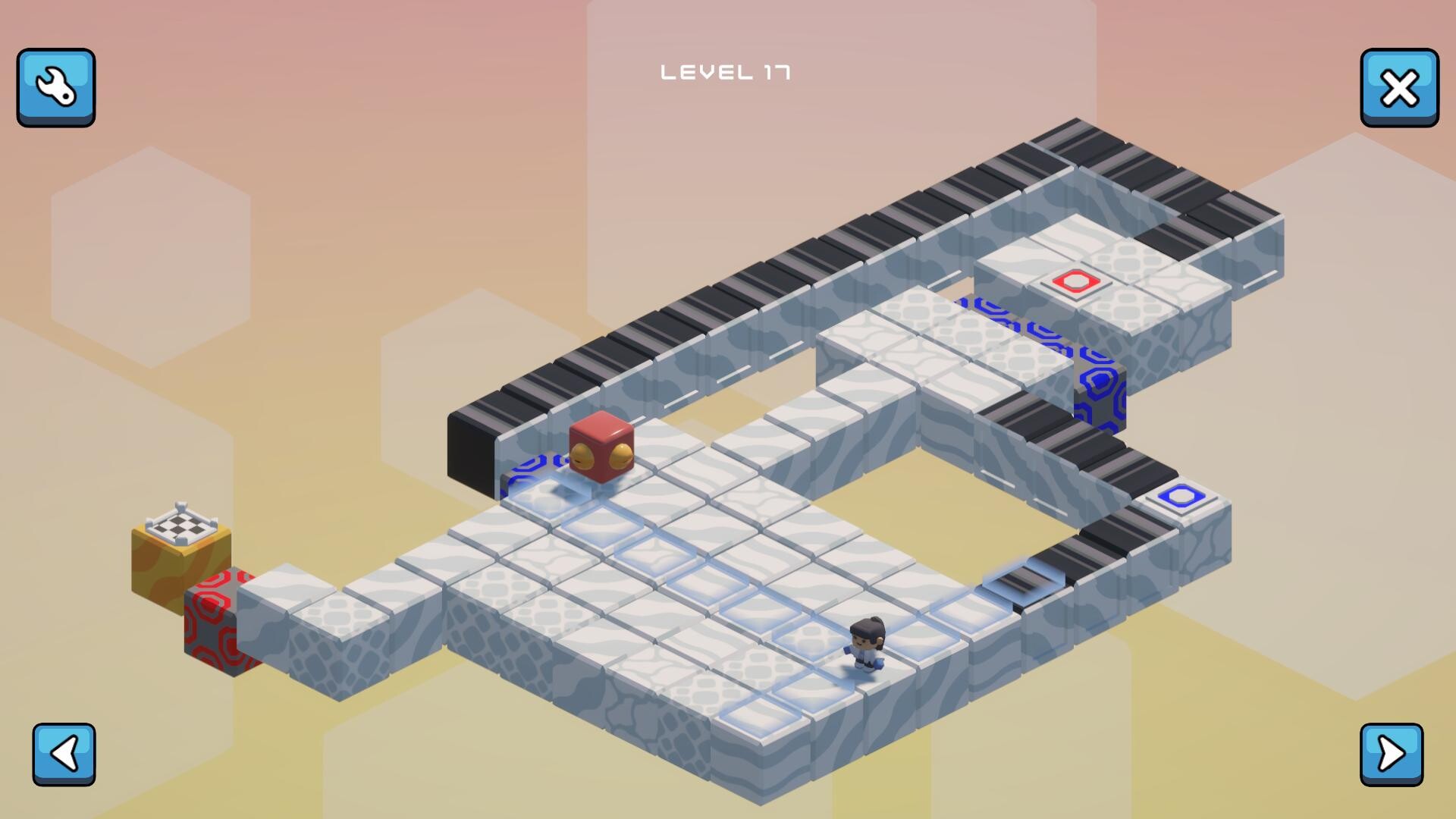 • Slider: Conveyor-style tile that pushes you in a fixed direction, as long as nothing blocks the path.
